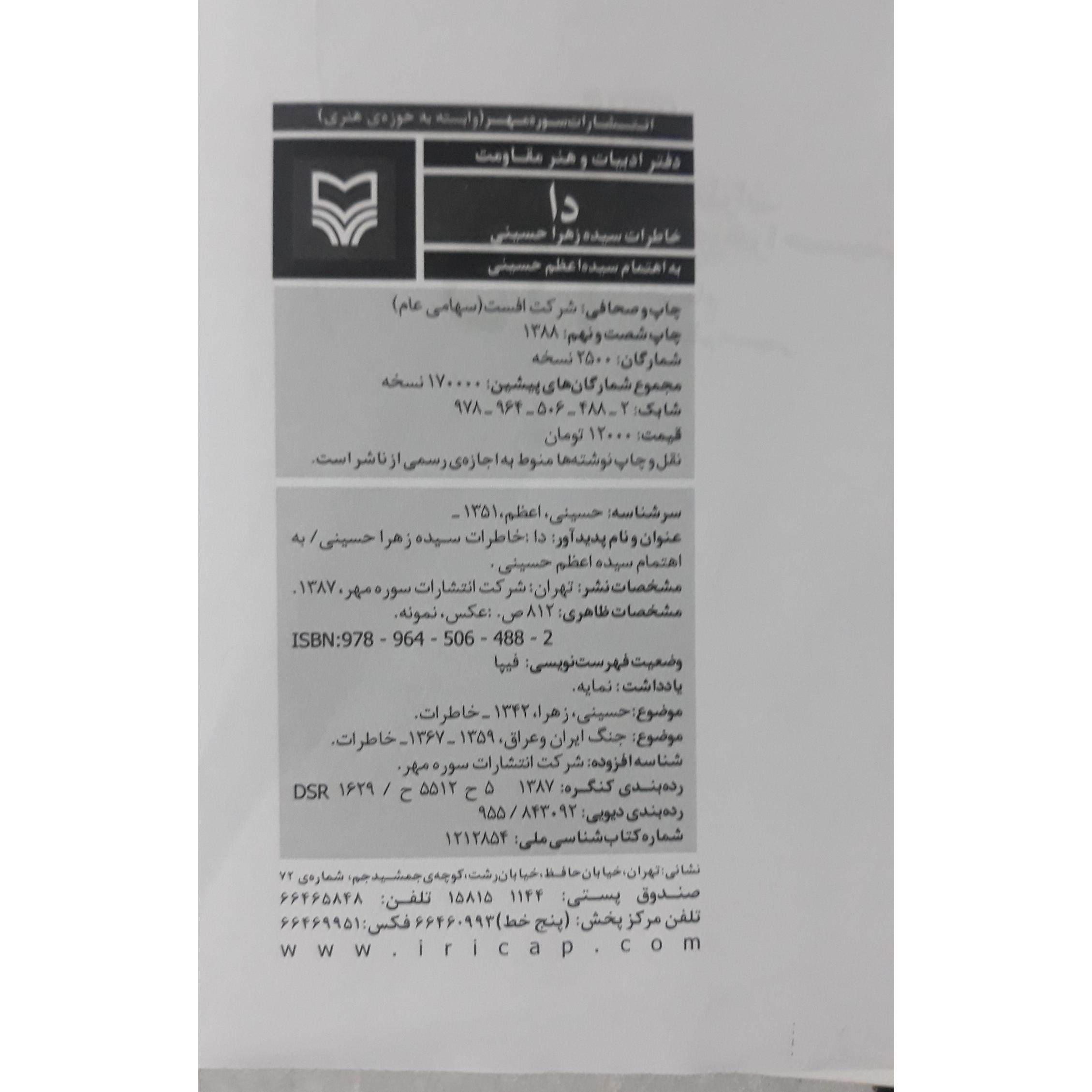 کتاب دا با 812 صفحه ، مجموعه خاطرات سیده زهرا حسینی
