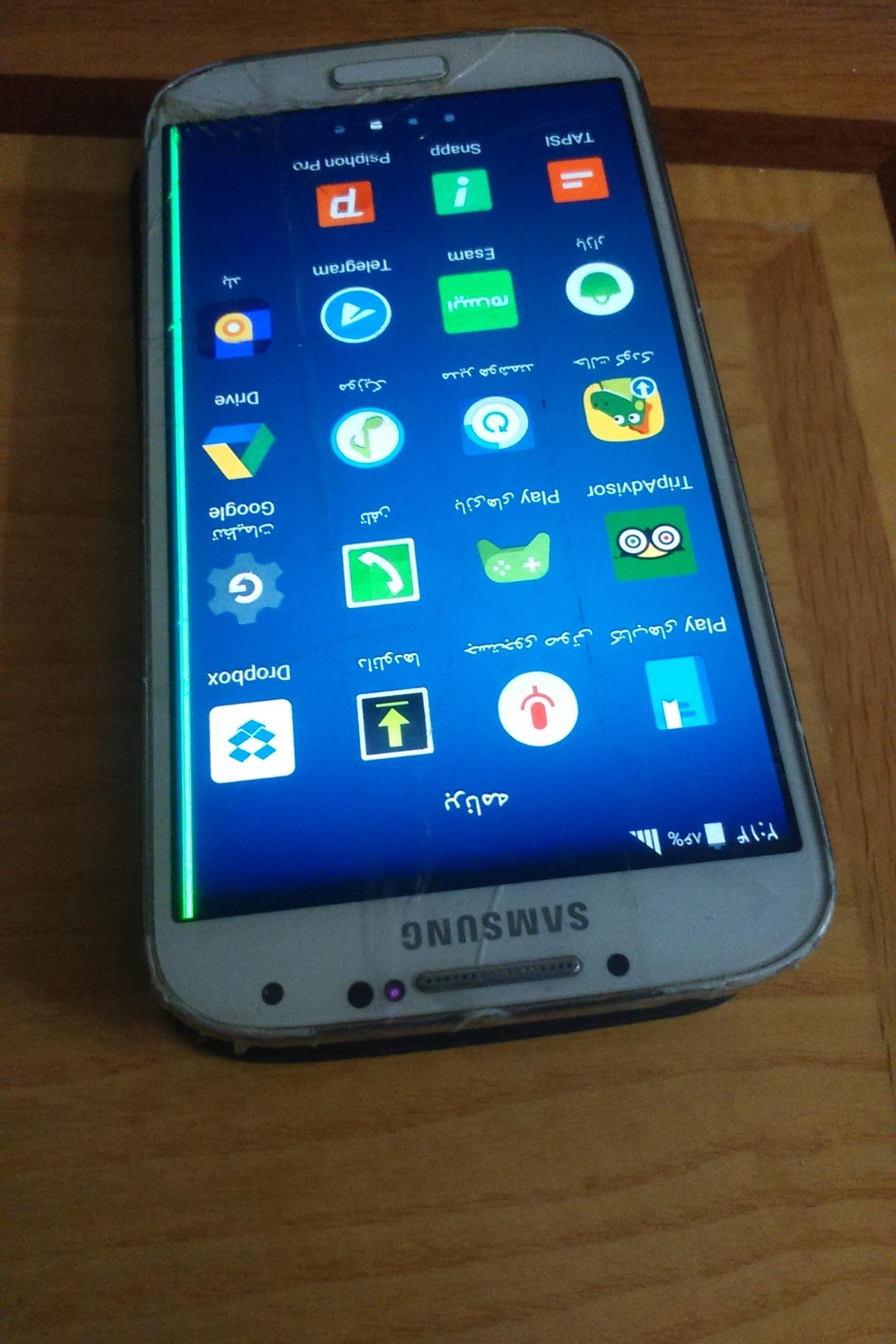گوشی اس4سالم وتمیزه فقط طبق تصویر تاچ ترک داره وکنار صفحه خط زرد افتاده ولی بهیچ وجه مشکلی درکارکرد نداره