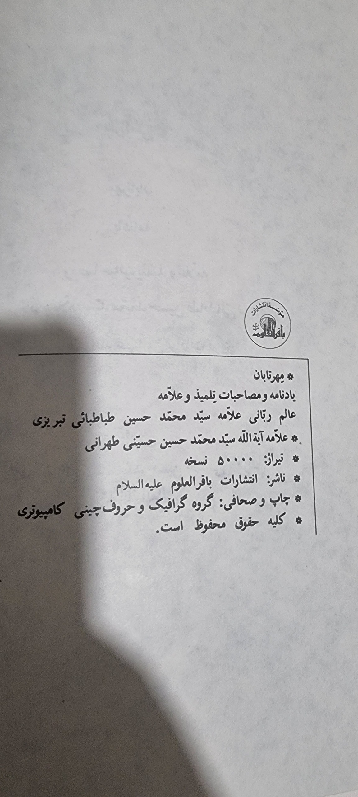 | نوع چاپ کتاب | چاپ اصل |