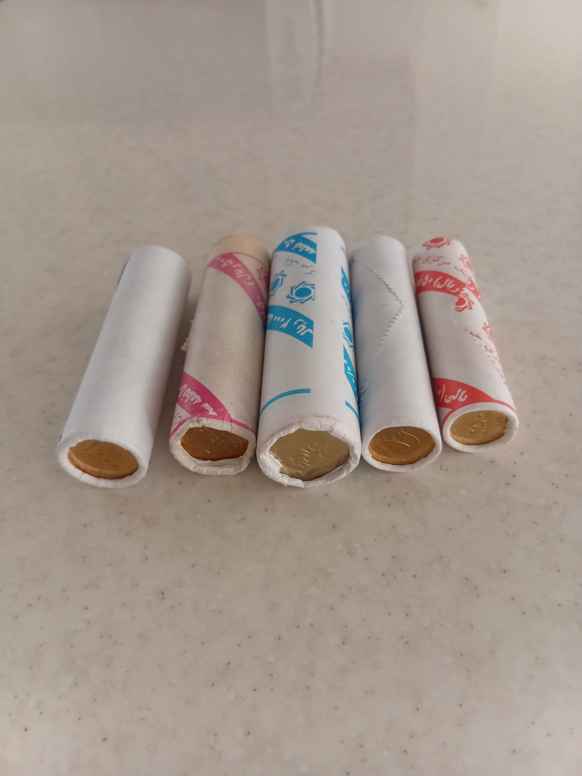 5 رول سکه های جمهوری اسلامی بشرح زیر : 1- رول سکه 50 عددی2000 ریالی سند چشم انداز ، 500 تومان. 2- 2 رول سکه 50 عددی 1000ریال نیمه شعبان 000/000/ 1. 3- 1رول سکه 50 عددی 500ریال خرمشهر 450 تومان. 4- 1 رول سکه 50 عددی 250 ریال مدرسه فیضیه 450 تومان . رول ها بدون هیچ ایرادی مطابق تصاویر تقدیم میشود و کالا مرجوعی ندارد ، در صورت هر سوالی در خدمت هستم ، سلامت باشید .