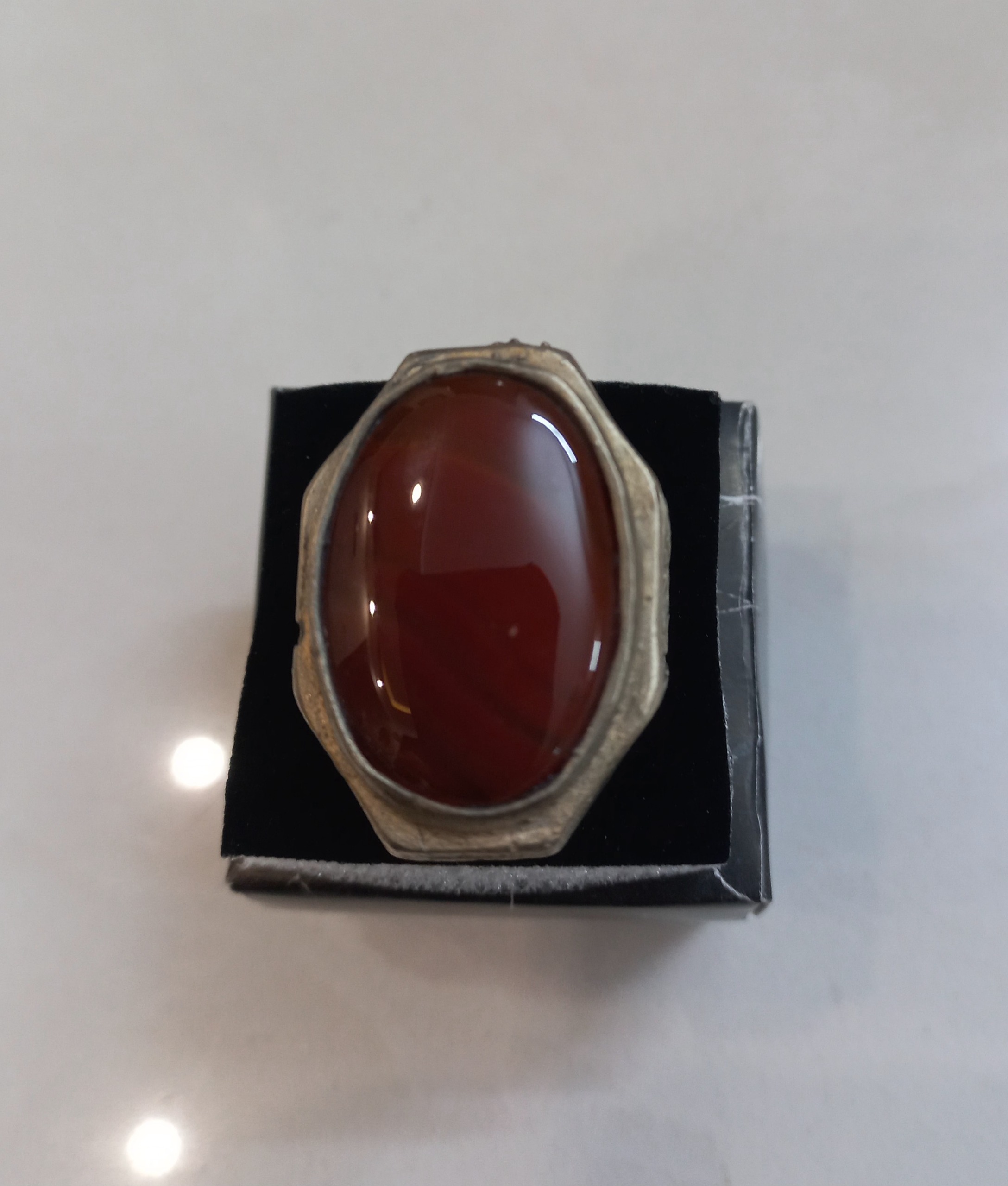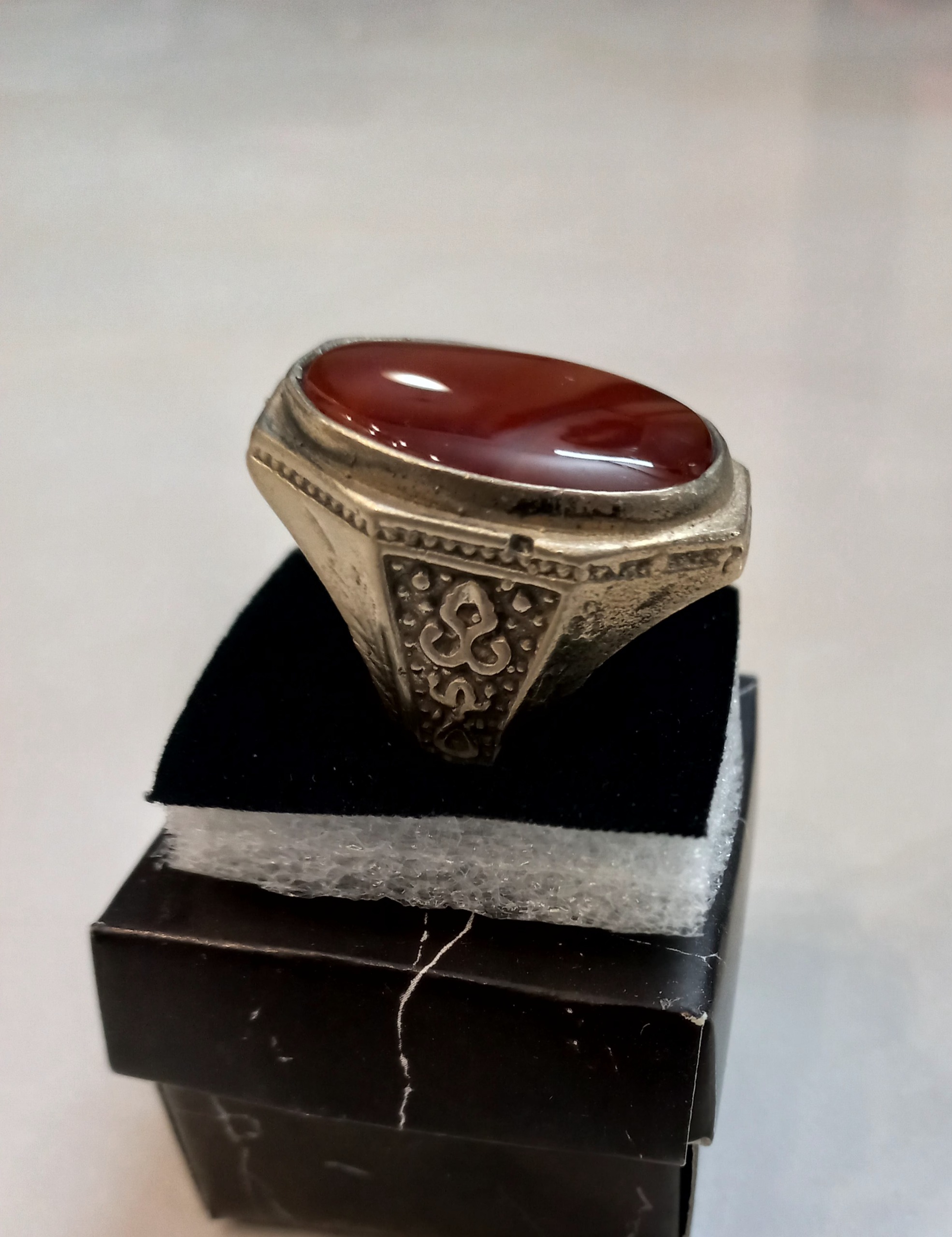 انگشتر عقیق یمنی درشت وجوندار با رکاب قلمزنی