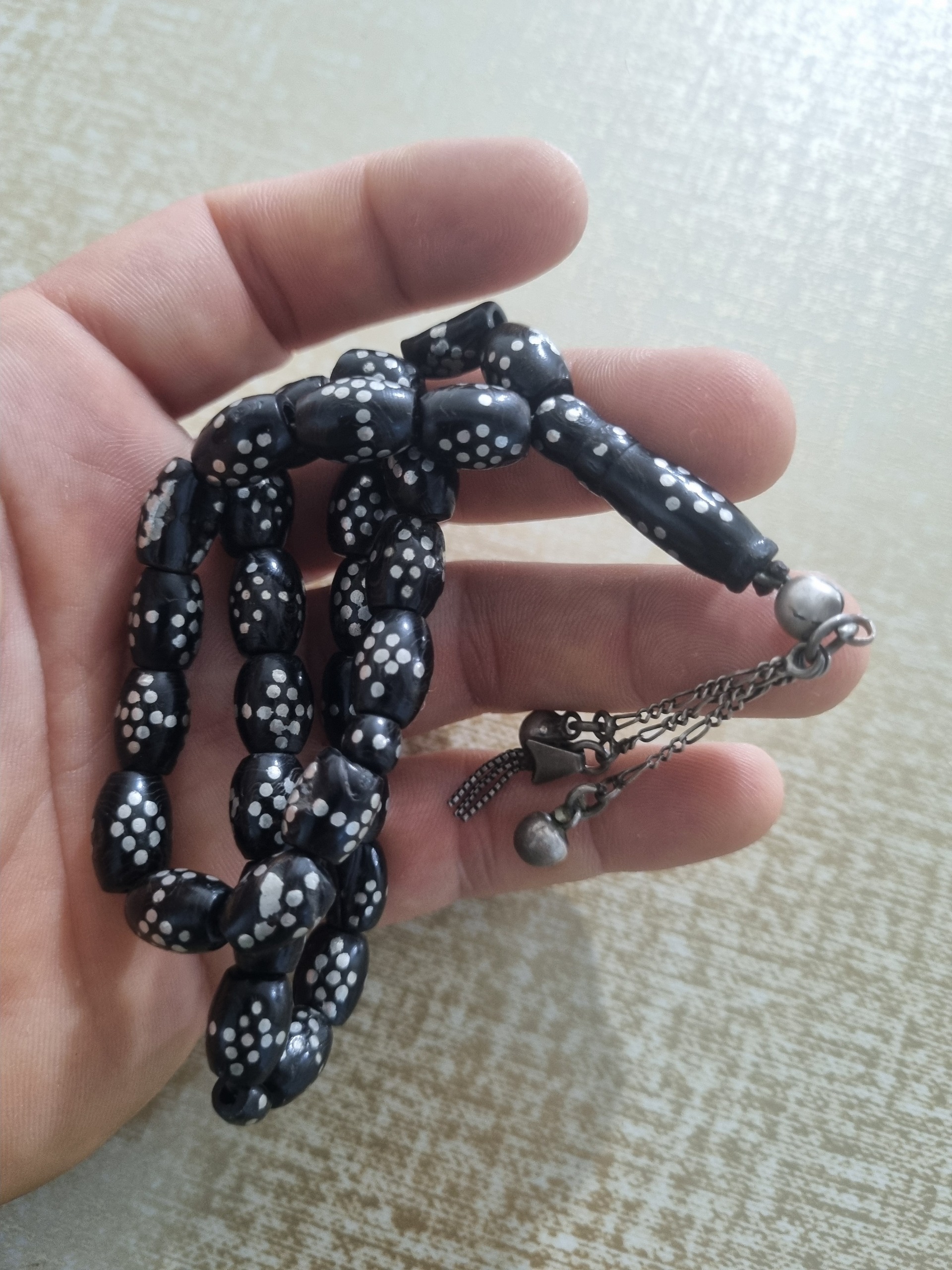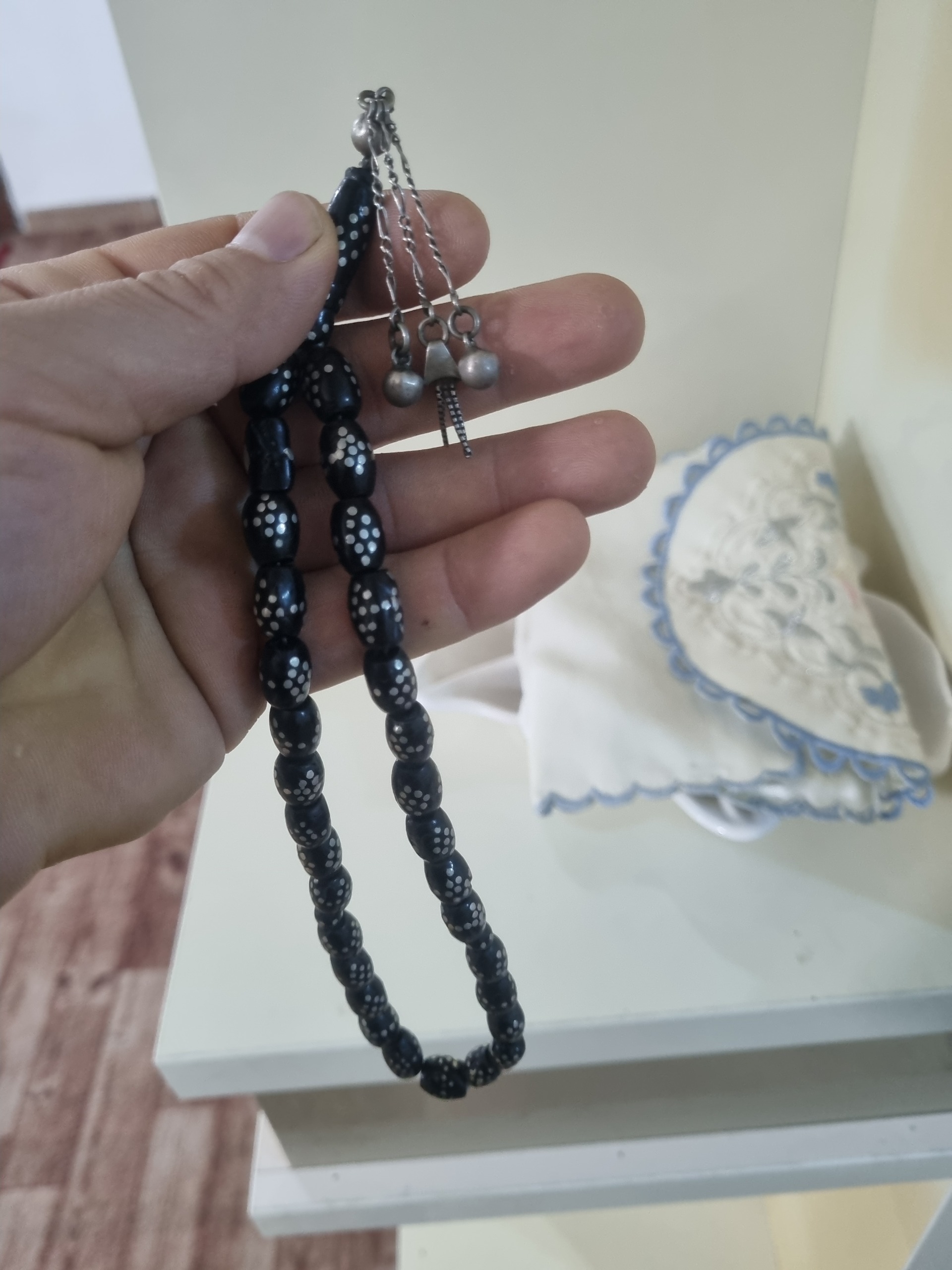 تسبیح یسر 80 ساله نقره کوب شده حتی سری تسیبح از جنس نقره است خلاصه اونایی که دنبال یه کار با اصلالت دست ساز عتیقه میگردن بهترین انتخابه