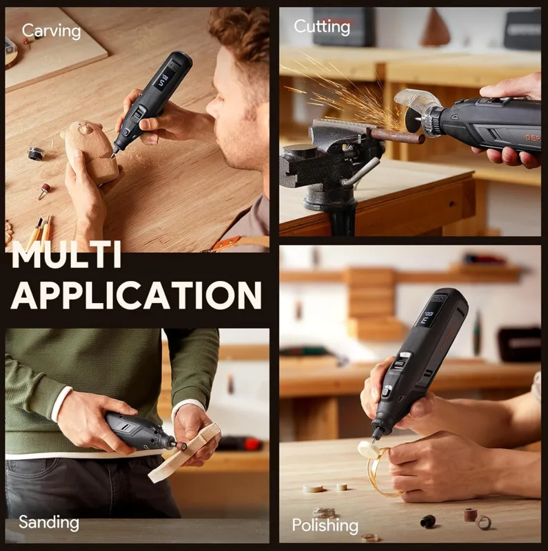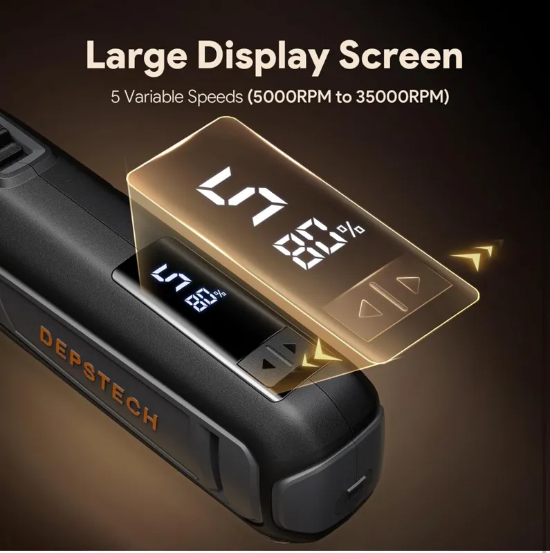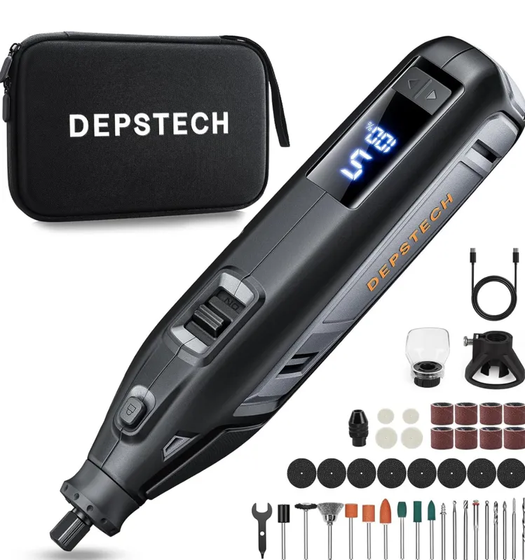 ابزار فرز دستی DEPSTECH 12V با صفحه نمایش، 5000-35000 دور در دقیقه، باتری 2.5 آمپر ساعت با شارژ سریع 18 وات، کیف EVA، کیت ابزار چندکاره قدرتمند 48 عددی، لوازم جانبی بادوام برای پروژههای DIY/تعمیرات منزل/کاردستی