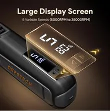 در مقایسه با ابزارهای چندکاره سنتی، این ابزار چرخشی بیسیم از طراحی ظاهری مدرنتر و تکنولوژیکیتری برخوردار است. این ابزار دارای یک صفحه نمایش دیجیتالی بزرگ است که به طور دقیق قدرت و سرعت باقی مانده را کنترل میکند، به طوری که میتوانید به راحتی وضعیت کار خود را در هر لحظه کنترل کنید. این ابزار حکاکی از طریق عملکرد حافظه میتواند آخرین تنظیم سرعتی را که ظرف 5 دقیقه پس از خاموش شدن استفاده کردهاید، به خاطر بسپارد و نیازی به تنظیم مجدد آن در هر بار نیست و ثبات و پایداری کار را تضمین میکند. پس از 5 دقیقه، به سرعت پیشفرض سوم باز میگردد. طراحی ارگونومیک و جمع و جور با لاستیک نرم با سطح وسیعتر برای ضد لغزش و راحتی در دست گرفتن، که راحتی و کنترل را در جلسات کاری طولانی به حداکثر میرساند. DEPSTECH P1P نسبت به سایر ابزارهای چرخشی با قدرت مشابه، صدا و لرزش کمتری دارد که میتواند تداخل با محیط اطراف و سایر افراد را کاهش دهد.