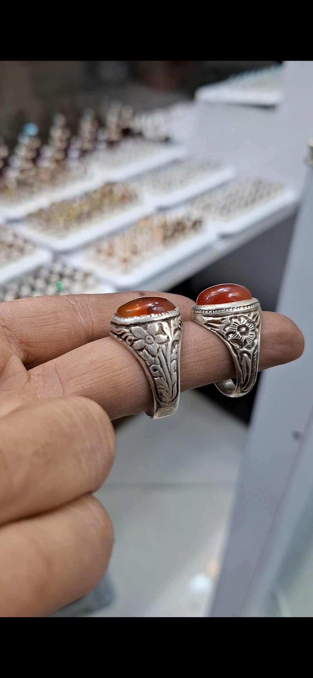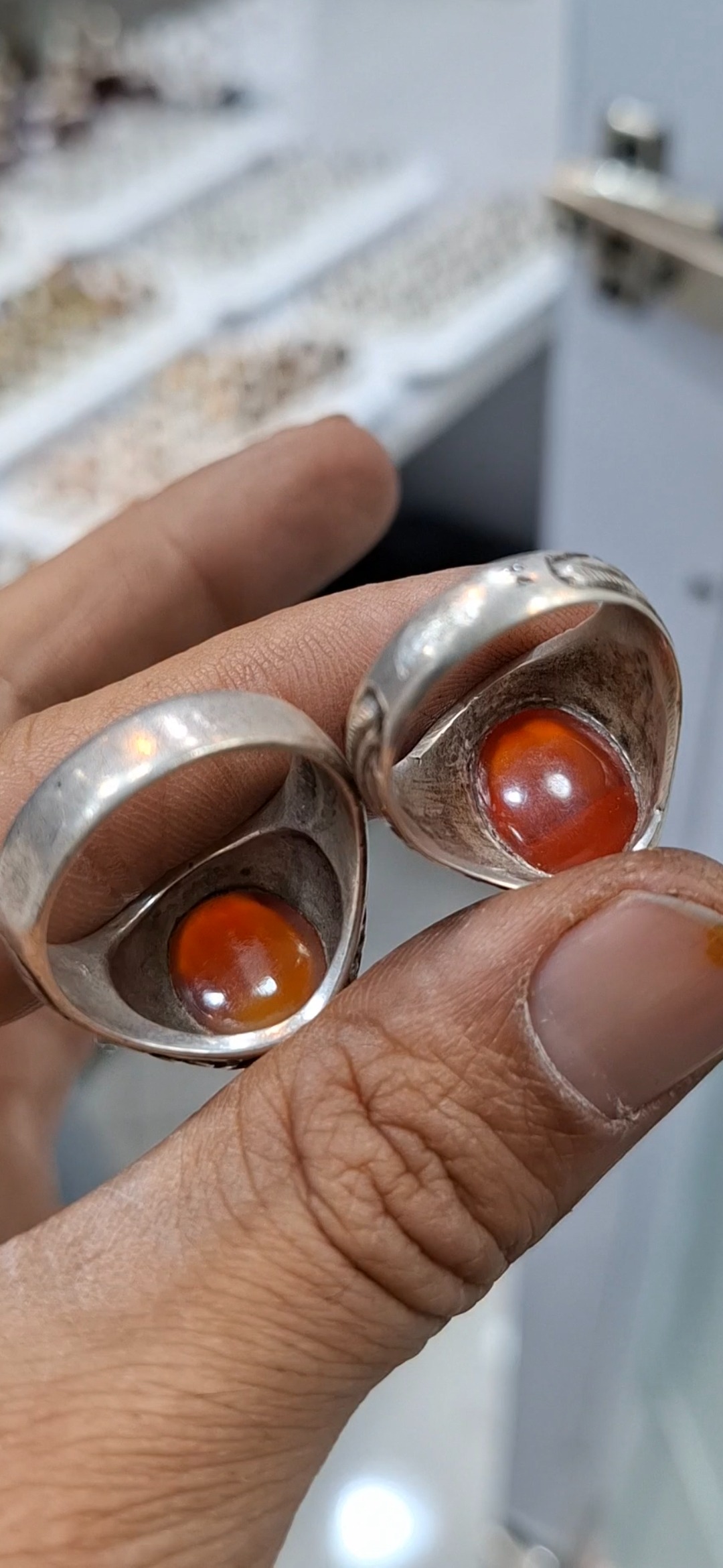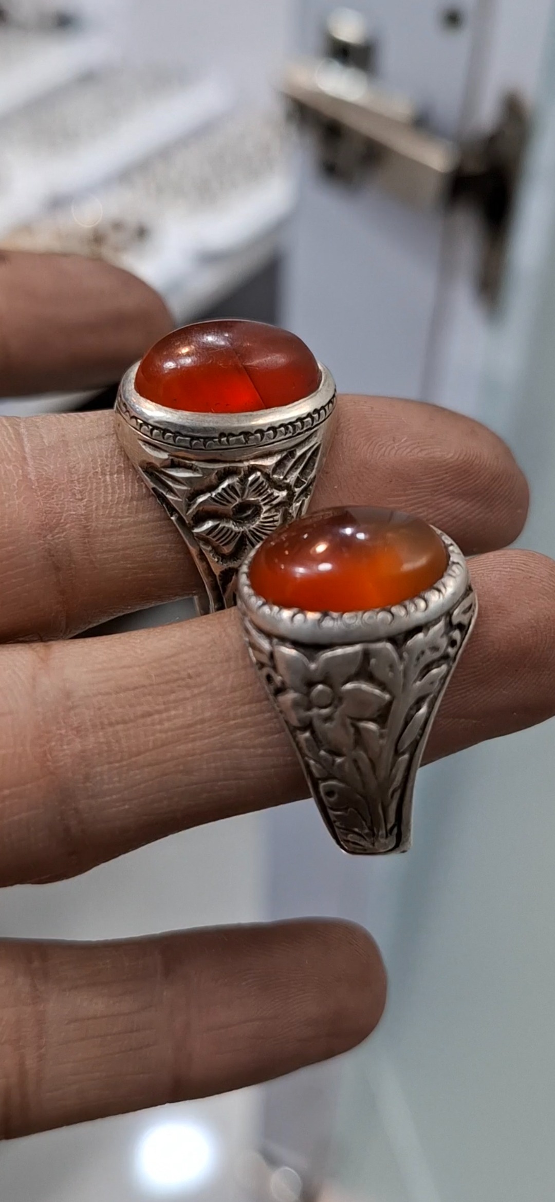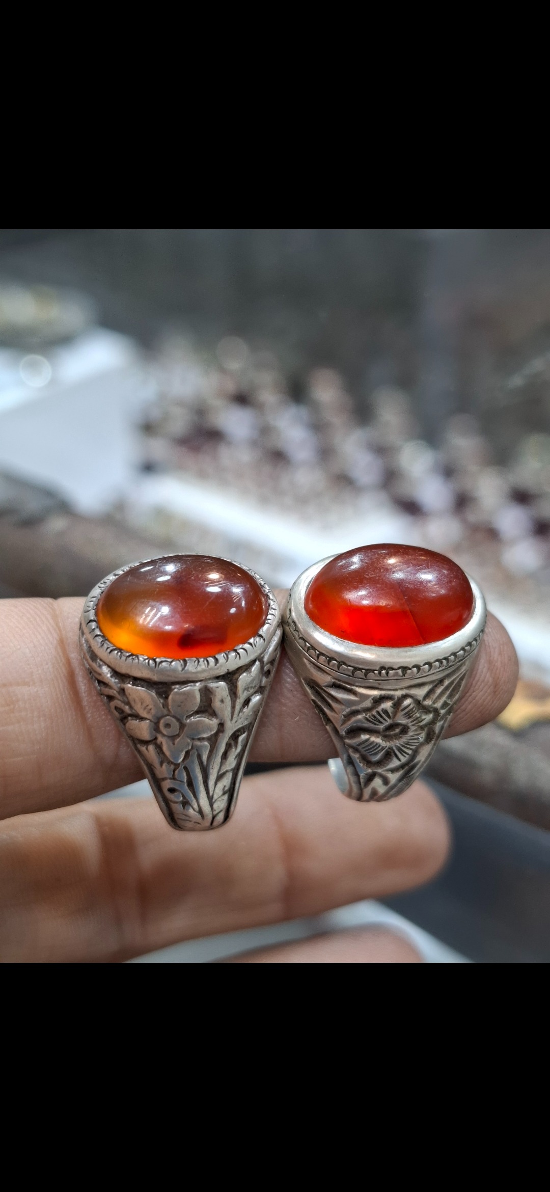 دوعدد انگشتر عقیق سرخ کهنه چرب خوشرنگ وابدار رکابها دستساز