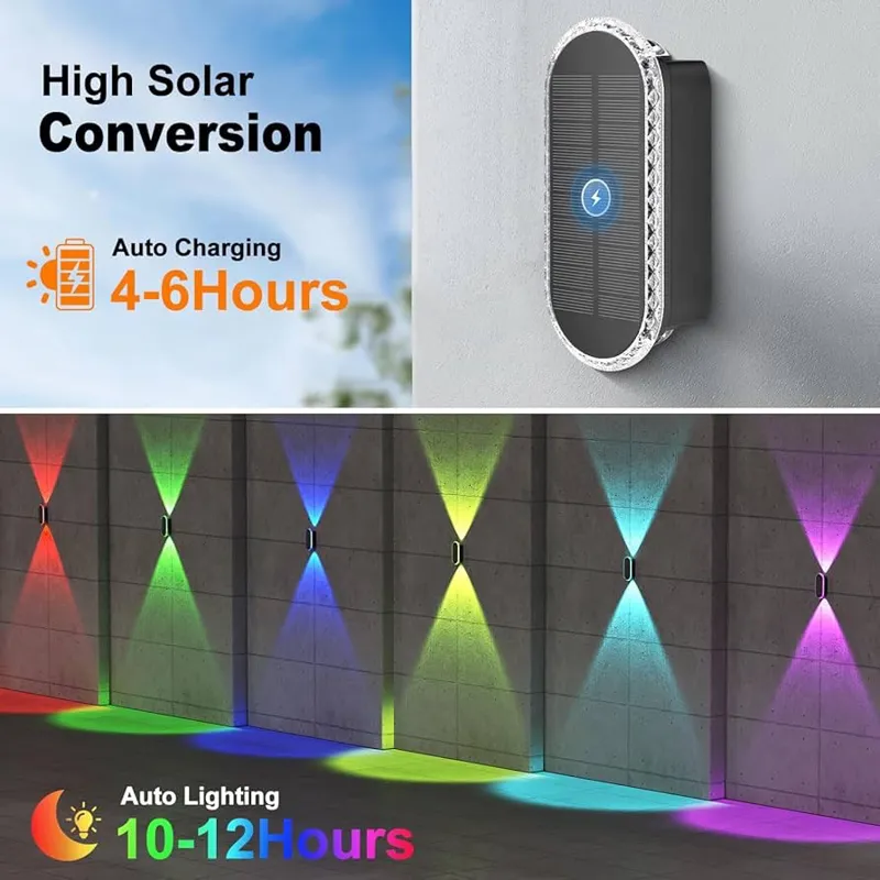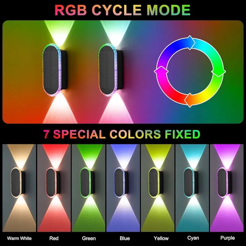 چراغهای حصار خورشیدی ELLASAY دیوار بیرونی: بسته 10 تایی چراغهای LED ضد آب IP65 با حالتهای چند رنگ و چرخه خودکار - نور بالا و پایین برای روشنایی باغ/حصار/پاسیو