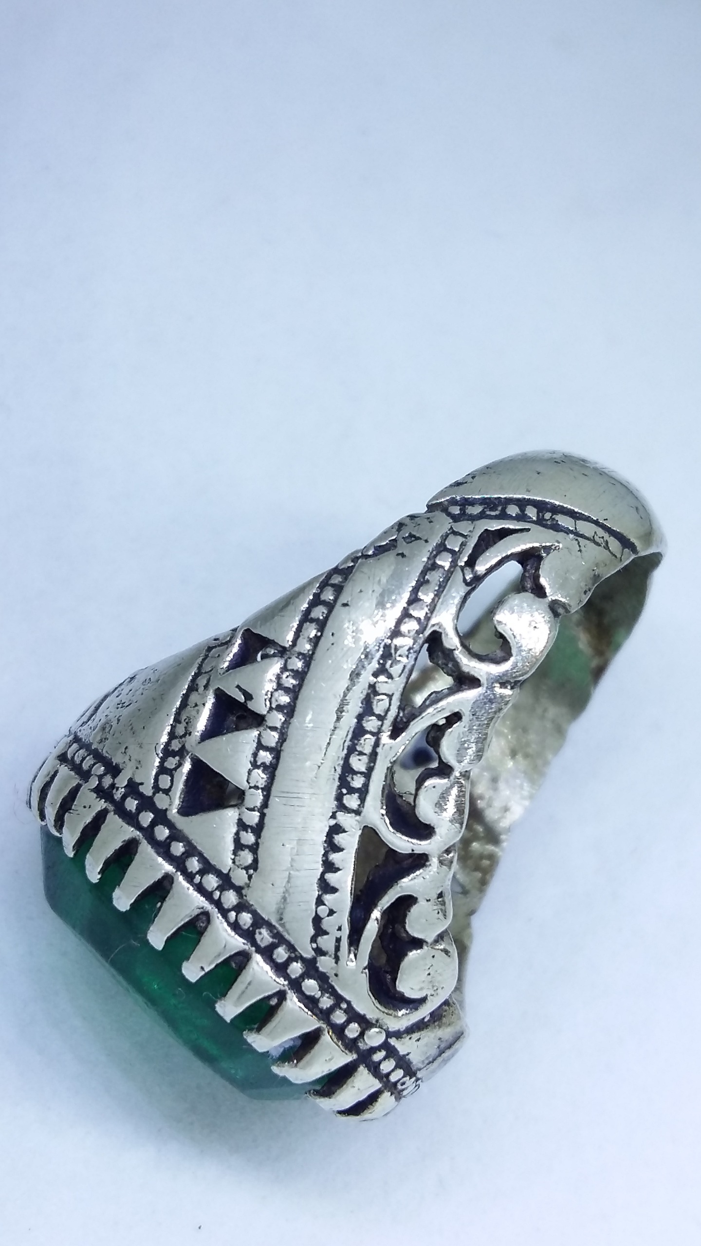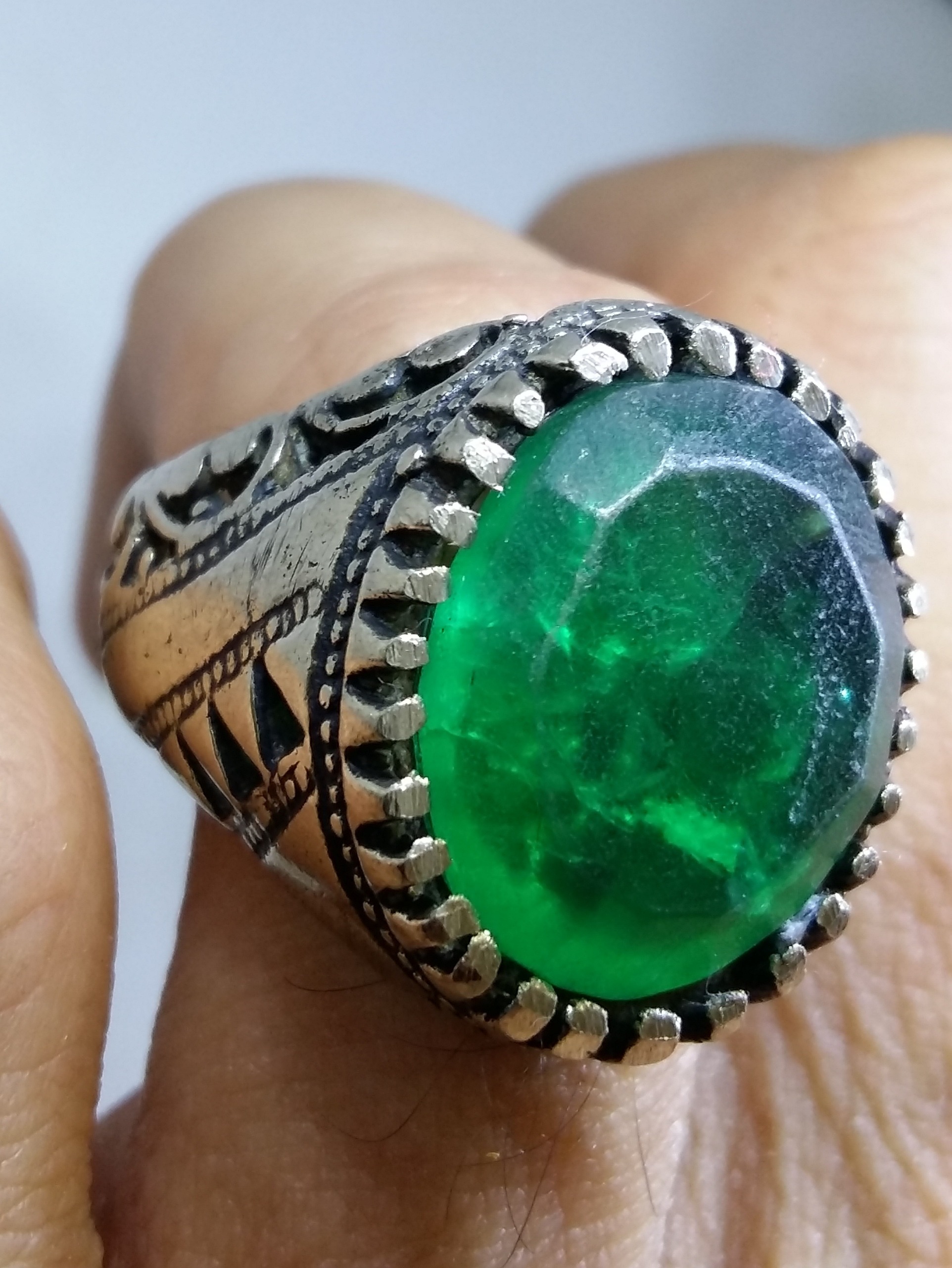 انگشتر آنتیک فاخر زمرد سبز برزیلی معدنی اصیل