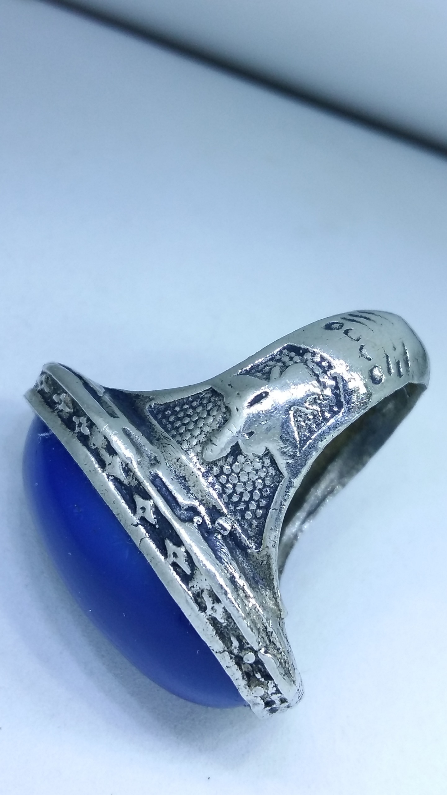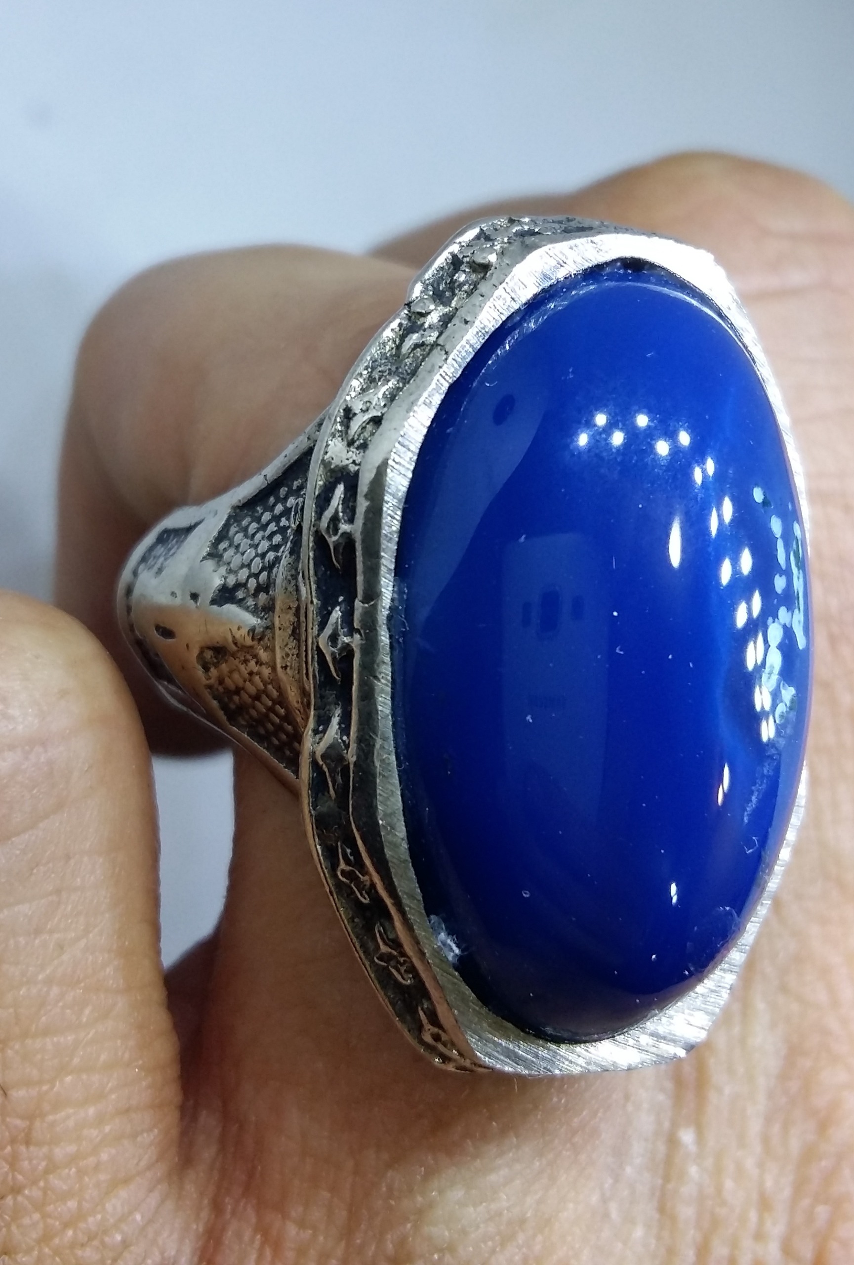 انگشتر فروهر شاهانه عقیق آبی خوشرنگ برزیلی
