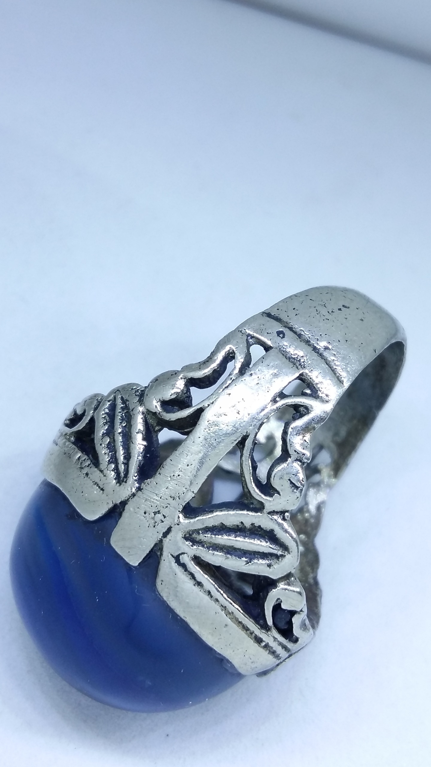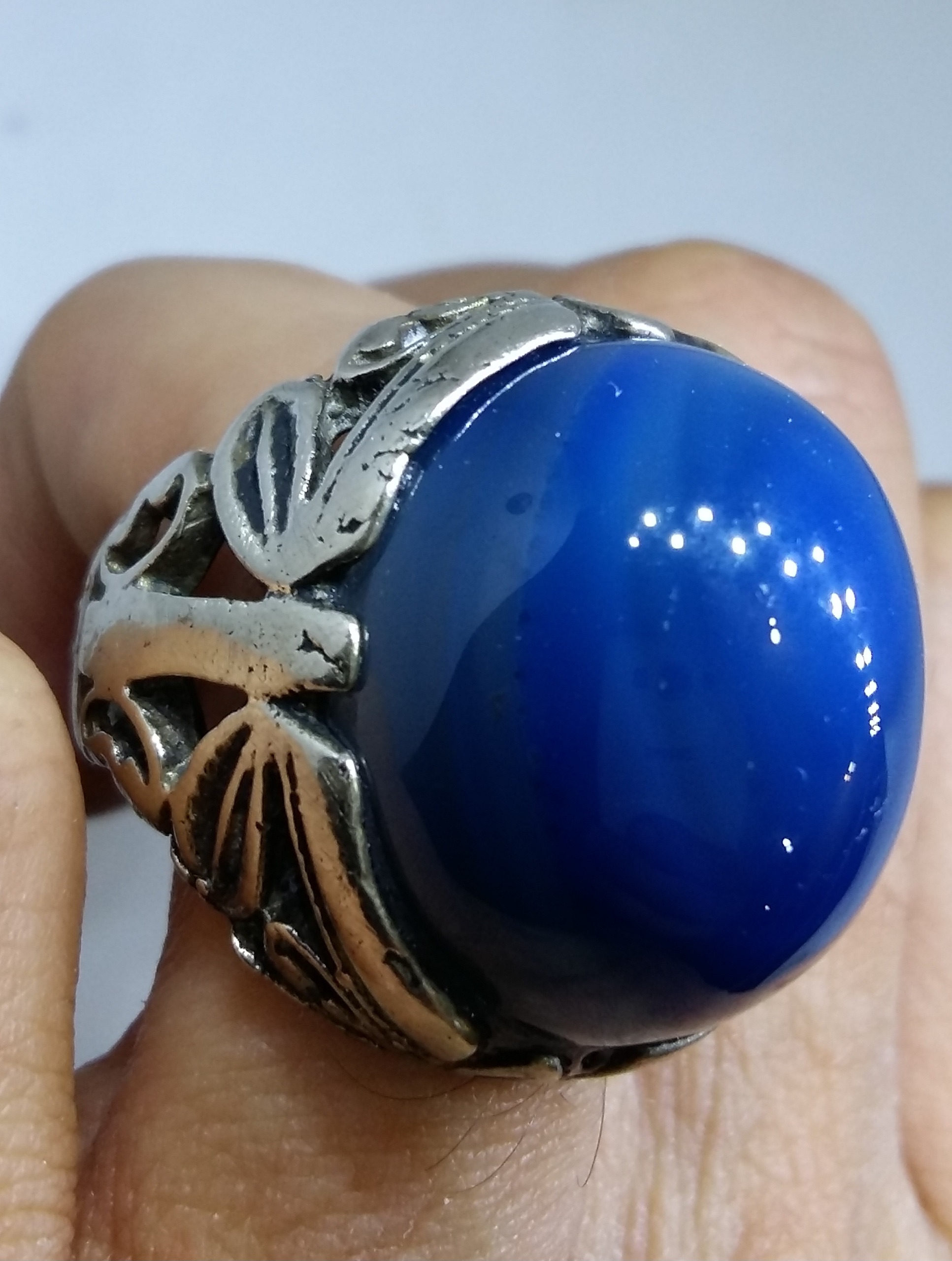 انگشتر بزرگ اشرافی عقیق آبی کلوخه معدنی و زیبا