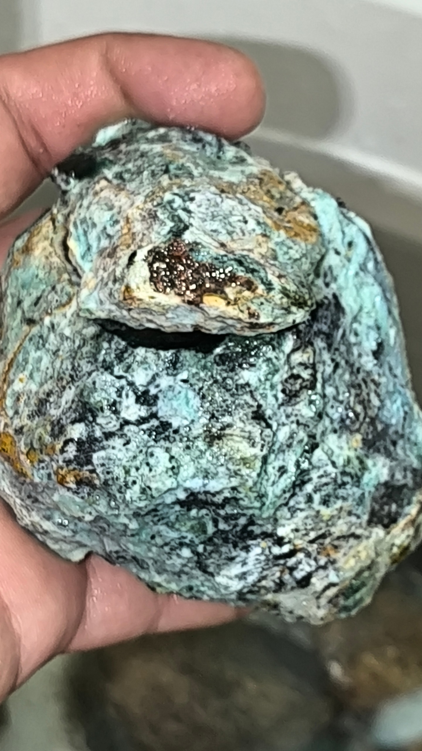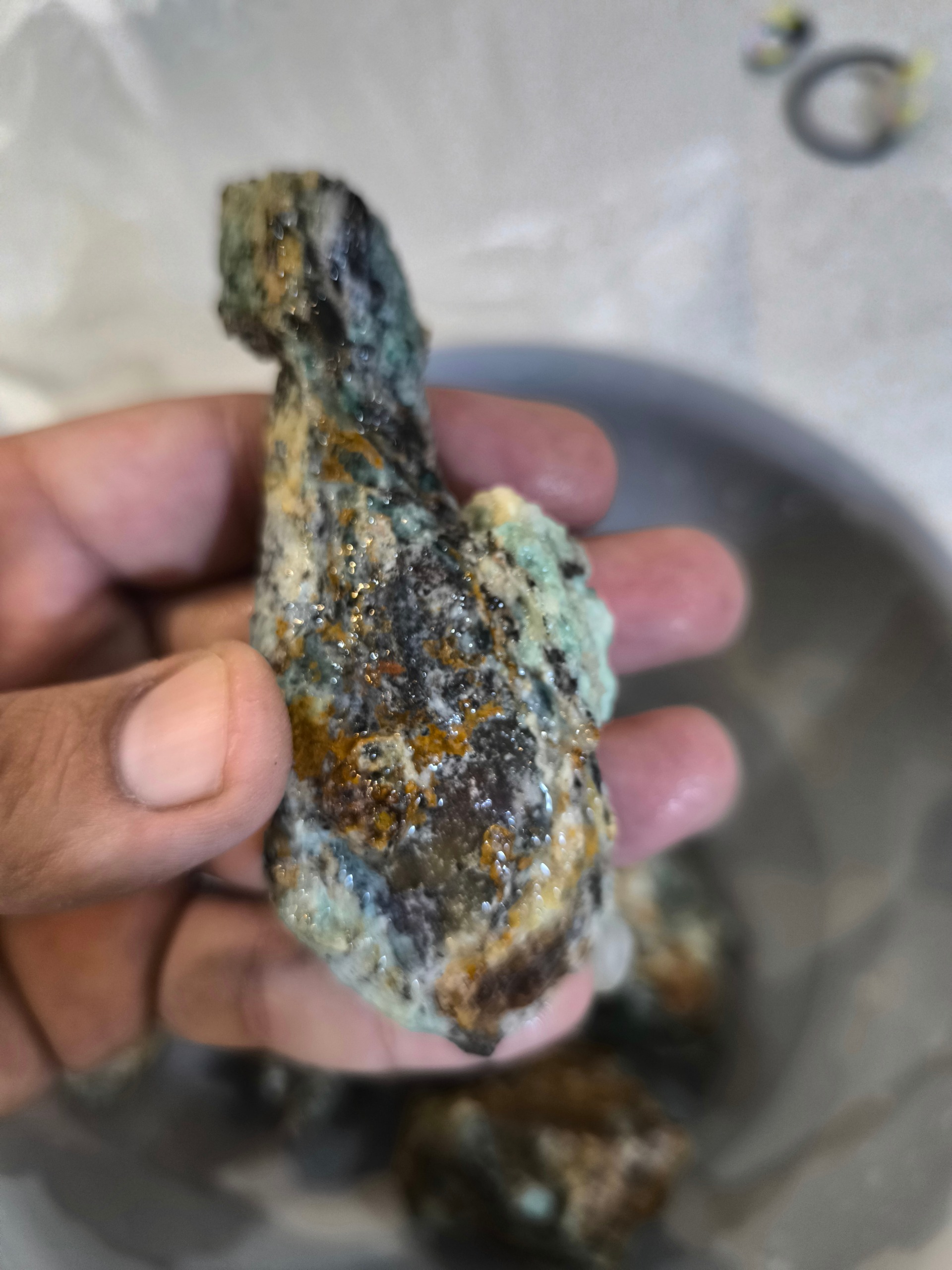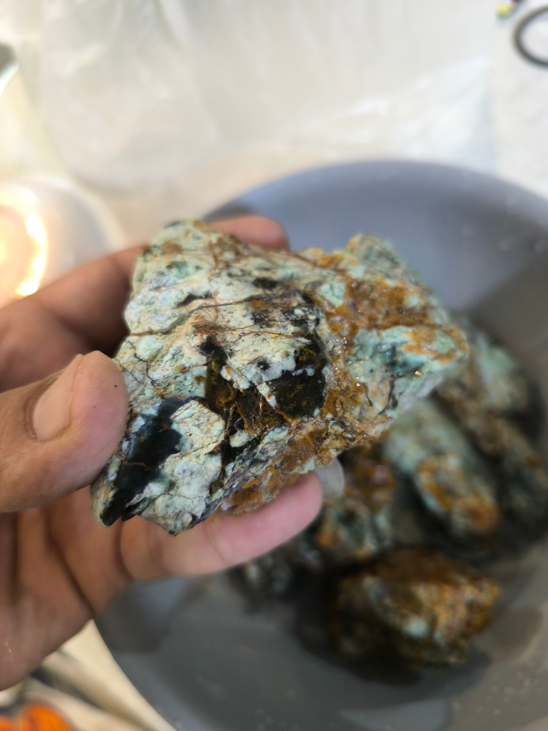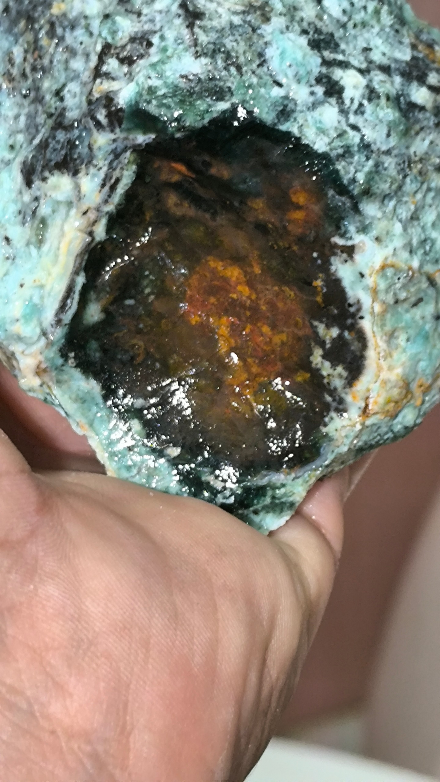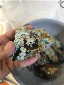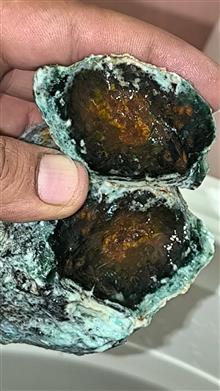 توپی وارداتی از کشور تانزانیا سه سال پیش با دلار 40 هزار تومان وارد کردم پوسته خیلی زشتی داره سر همین فقط پنجاه کیلو وارد کردم کنار خیلی چیزهای دیگه مثل مالاکیت که گارنت داره و کلی یاقوت و زمرد با شناسنامه خارجی که الان شروع به فروش اون بار کردم چیزایی که سه سال قبل خریدم دستگاه برش ندارم یه تیکه ازش شکستم داخلش واقعا قشنگه وقتی نور میندازی دیونه میکنه ادم رو اسم کهکشان رو خودم گذاشتم روش چون واقعاً نمیدونم چه سنگی هست داخلش با دلار اون موقع برام کیلویی 1300 افتاد الان هم تقریبا همون قیمت میدم کیلوبی 800 میدم ولی فقط ده کیلو کسانی که خریدن لطف کنن ببرن ازش واسم عکس بفرستن ببینم چی هست سری بعدی قیمت جدید میزارم البته چیزهای ارزون هم دارم که به زودی همرو میزارم این سری رو کامل با ضرر میفروشم سه سال 1300 برای خودم مجبورم بزارم 800 که ببرن اگه بدونید داخل توپی ها چی هست حاضرید کیلویی دو میلیون تومان هم پول بدید عقیق سبز شفاف با شجر پاییزه اگه جایی همچین چیزی دیدید بگید ما هم بدونیم منتظرم یک نفر یک کیلو بخره بعد اون دیگه این قیمت نمیدم برمیگرده میشه کیلویی سه تومان میگید نه حالا ببینید