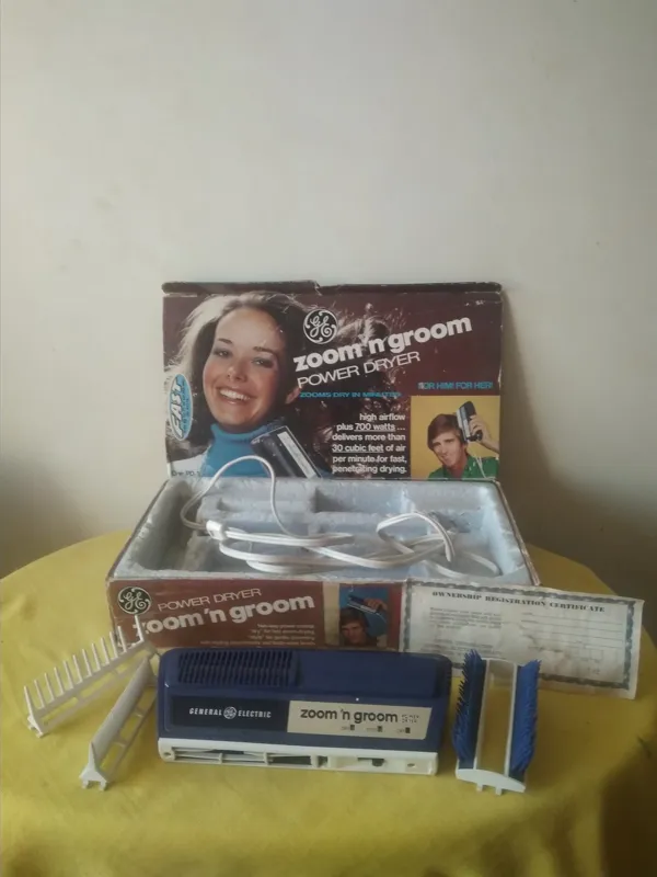 سشوار آمریکایی جنرال الکتریک دهه 60-70 میلادی میشه گفت نو با کارتن و کارت گارانتی و سه برس. برق 110 ولتی. موتور بسیار پر قدرت.