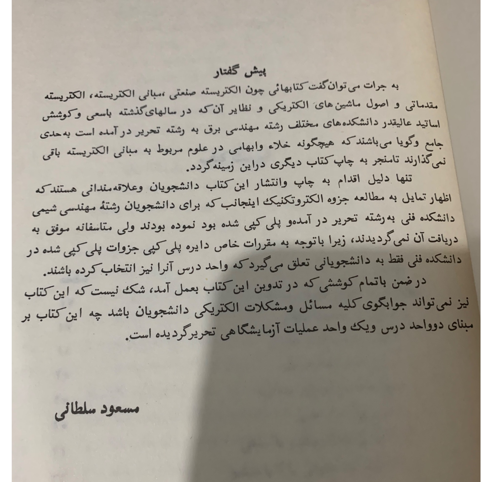 کتاب الکتروتکنیک تالیف پروفسور مرحوم مسعود سلطانی پدر صنعت برق ایران