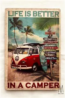 تابلو چوبی کوچک مدل وینتیج vintage (طرح کمپینگ)