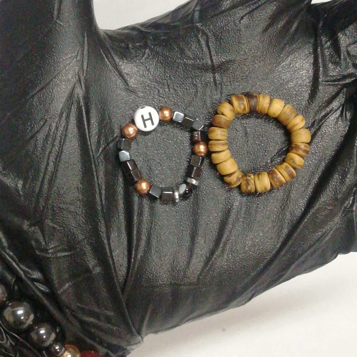 دوعدد انگشتر مهره ای سنگ و چوب طبیعی