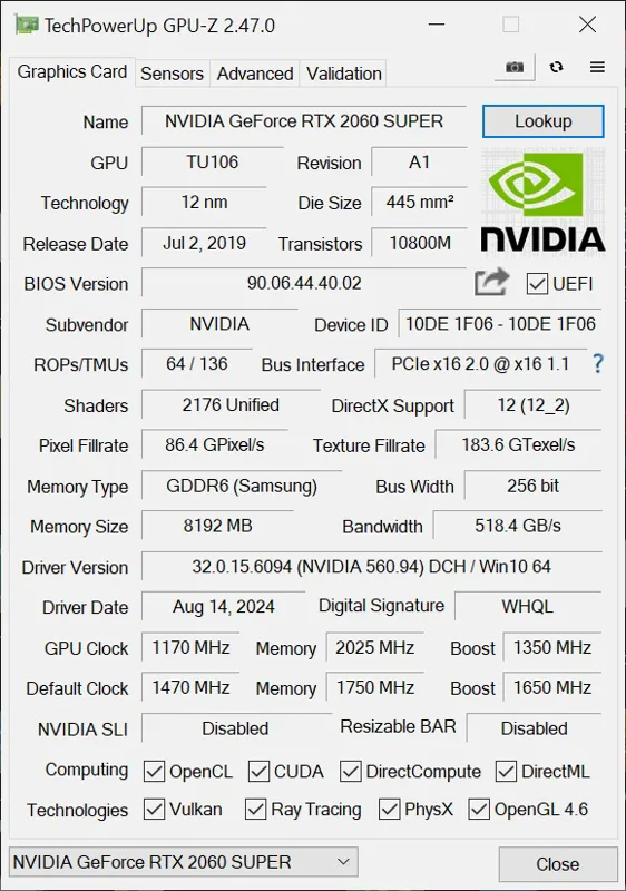 | مدل کارت گرافیک | rtx 2060 super |