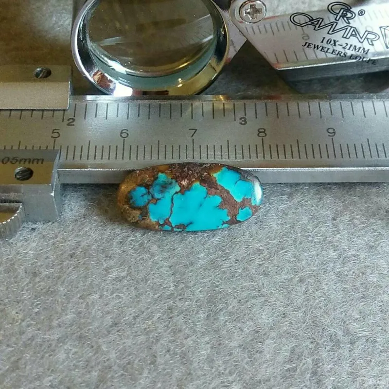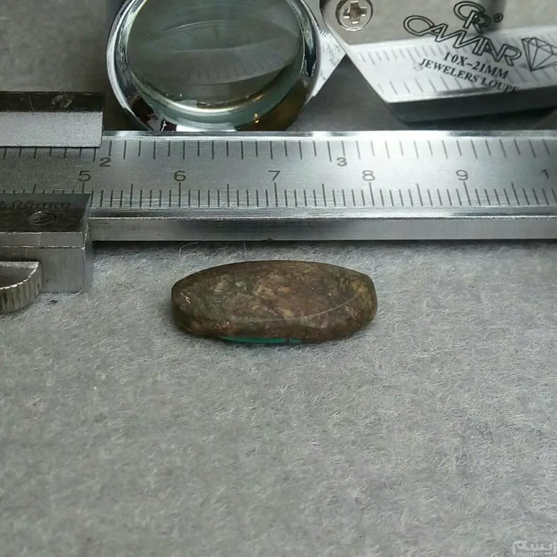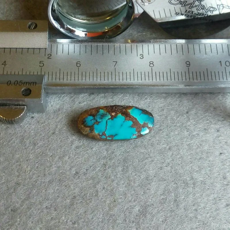فیروزه شجر فوق العاده خوش طبع و استثنایی، رگه طلایی. استخراج قدیم، استخراج سال 48 و تراش قدیم، تو بارخونه محفوظ بوده و رو رکاب نرفته. باب سوار انگشتری نفیس یا گردنی زیبا مخصوصا با طلا، ابعاد تقریبی: 10×20 خوش قواره و هارمونیک. طبع بسیار استثنایی و کمیاب.