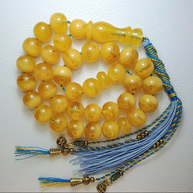 تسبیح 33 دانه کهربای کره عسلی طبیعی خوشرنگ کلکسیونی