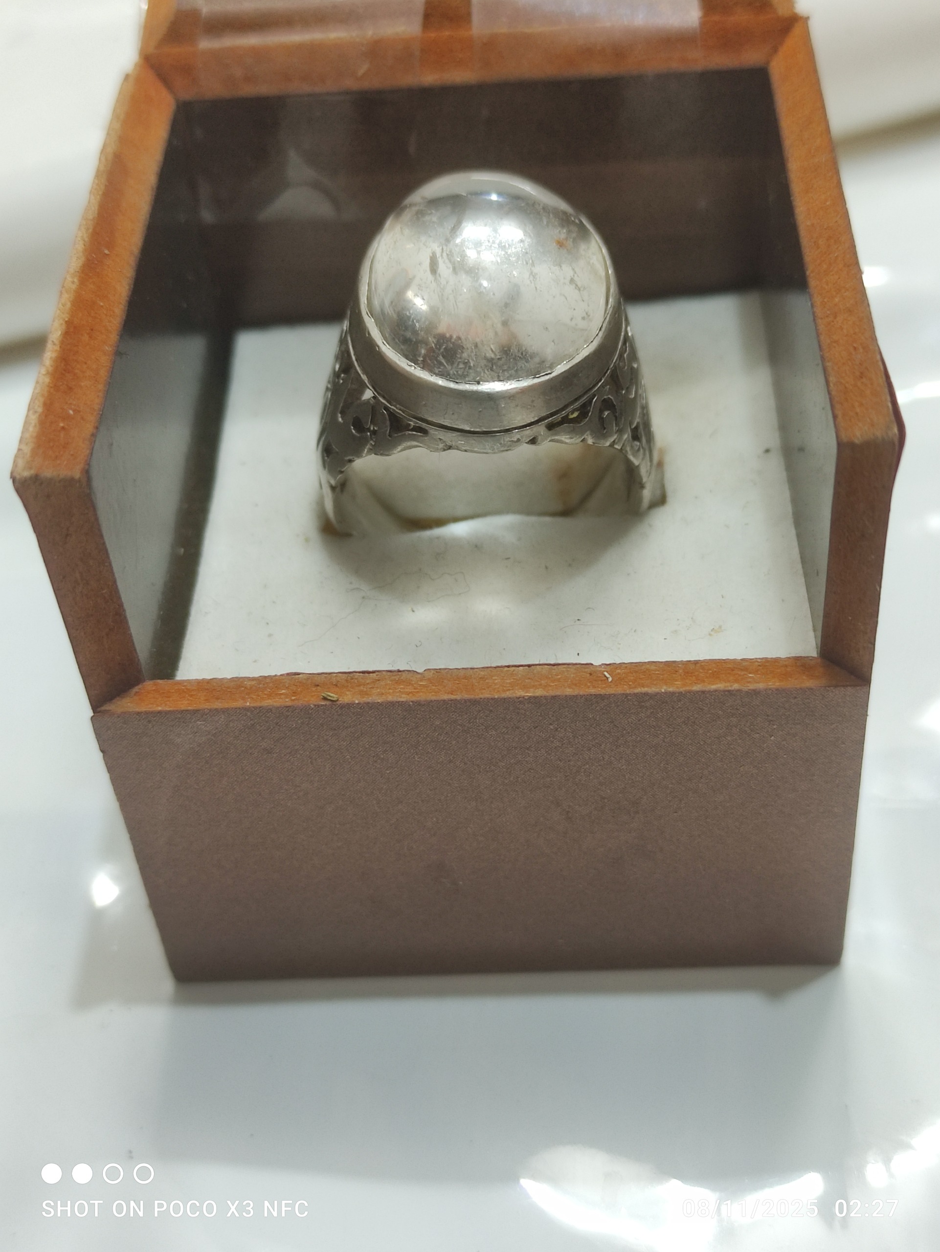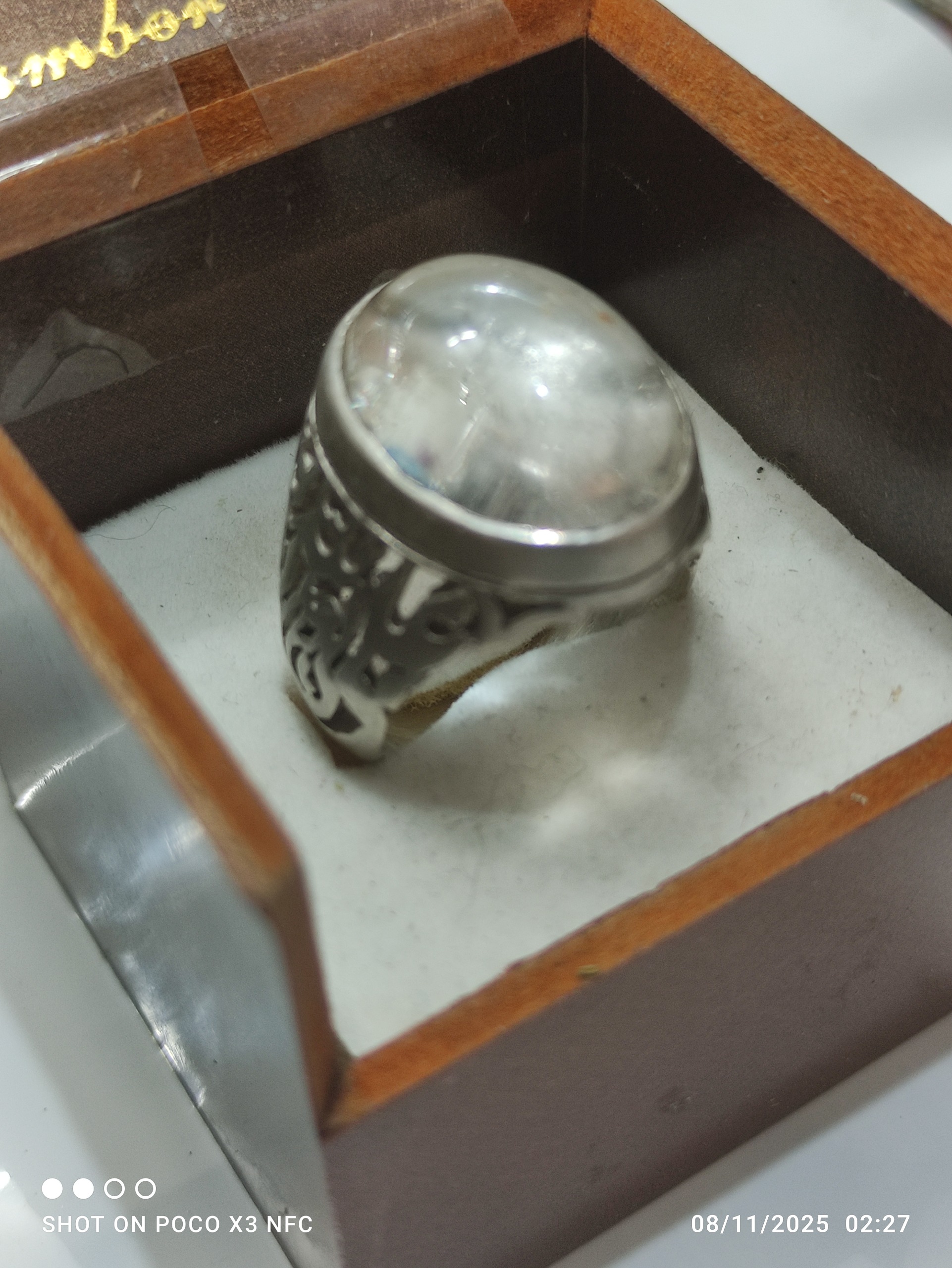 انگشتر نقره 925 با نگین اصلی کوارتز به وزن حدودأ 15 گرم با نوشته رکاب( محمد ان رسول الله علی ان ولی الله)