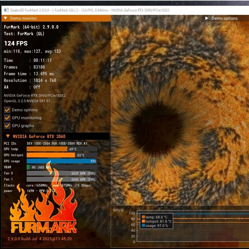عکس furMark گذاشتم توی 11 دقیقه دما شده 68 درجه