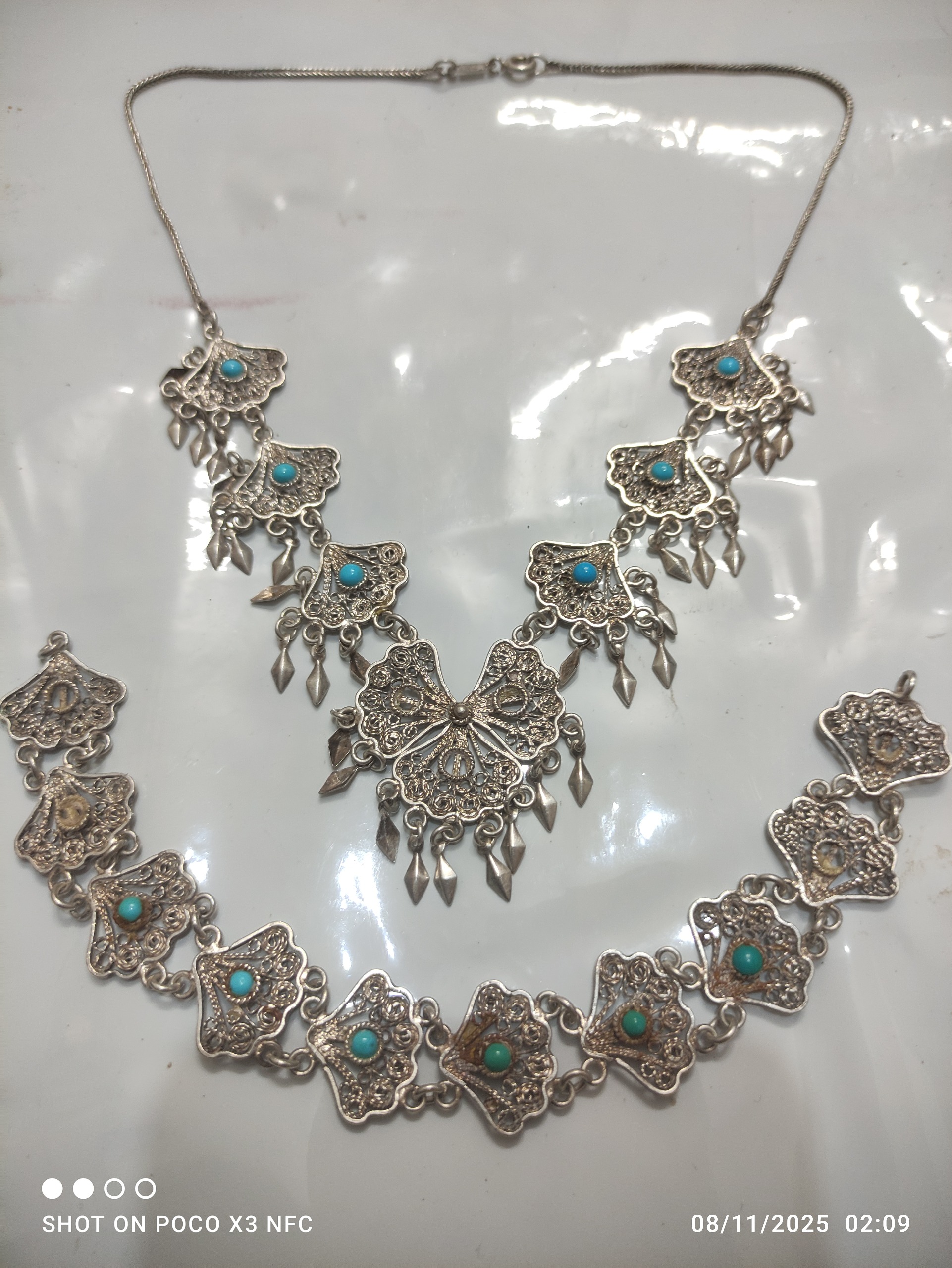 گردنبند و دستبند اصل نقره 925 و تمامأ کار دست هست البته چند تا از نگینهاشاز فروشگاه ما حتمأ دیدن کنید.