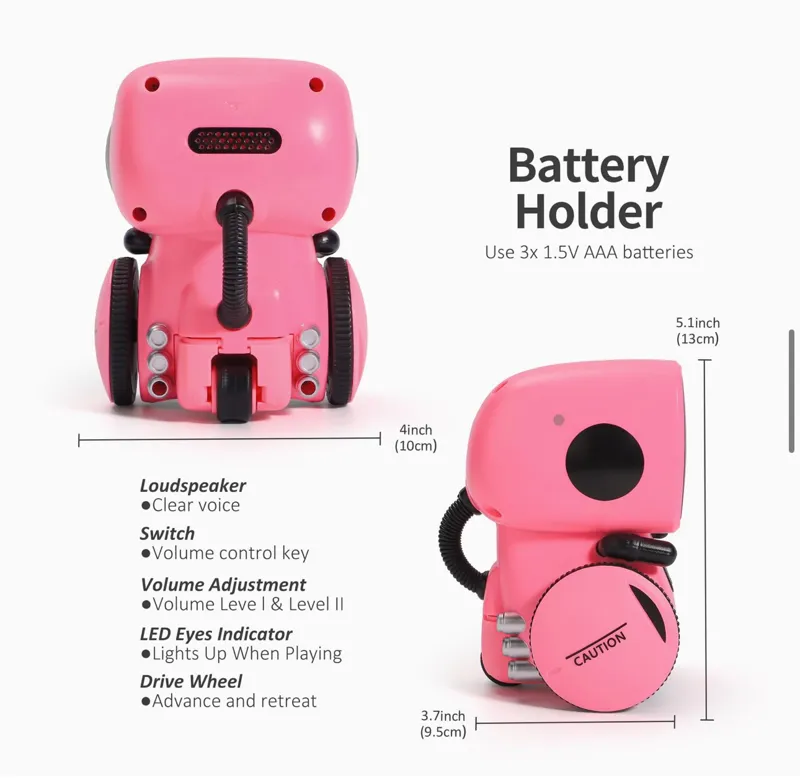 غیر سمی و سازگار با محیط زیست، ایمن و بادوام. ظاهر صاف، ایمن تر کردن روند بازی؛ ربات هوشمند با عملکرد و طراحی خنده دار که کودکان را جذب می کند. هدایای عالی برای پسران و دختران 3 سال به بالا.