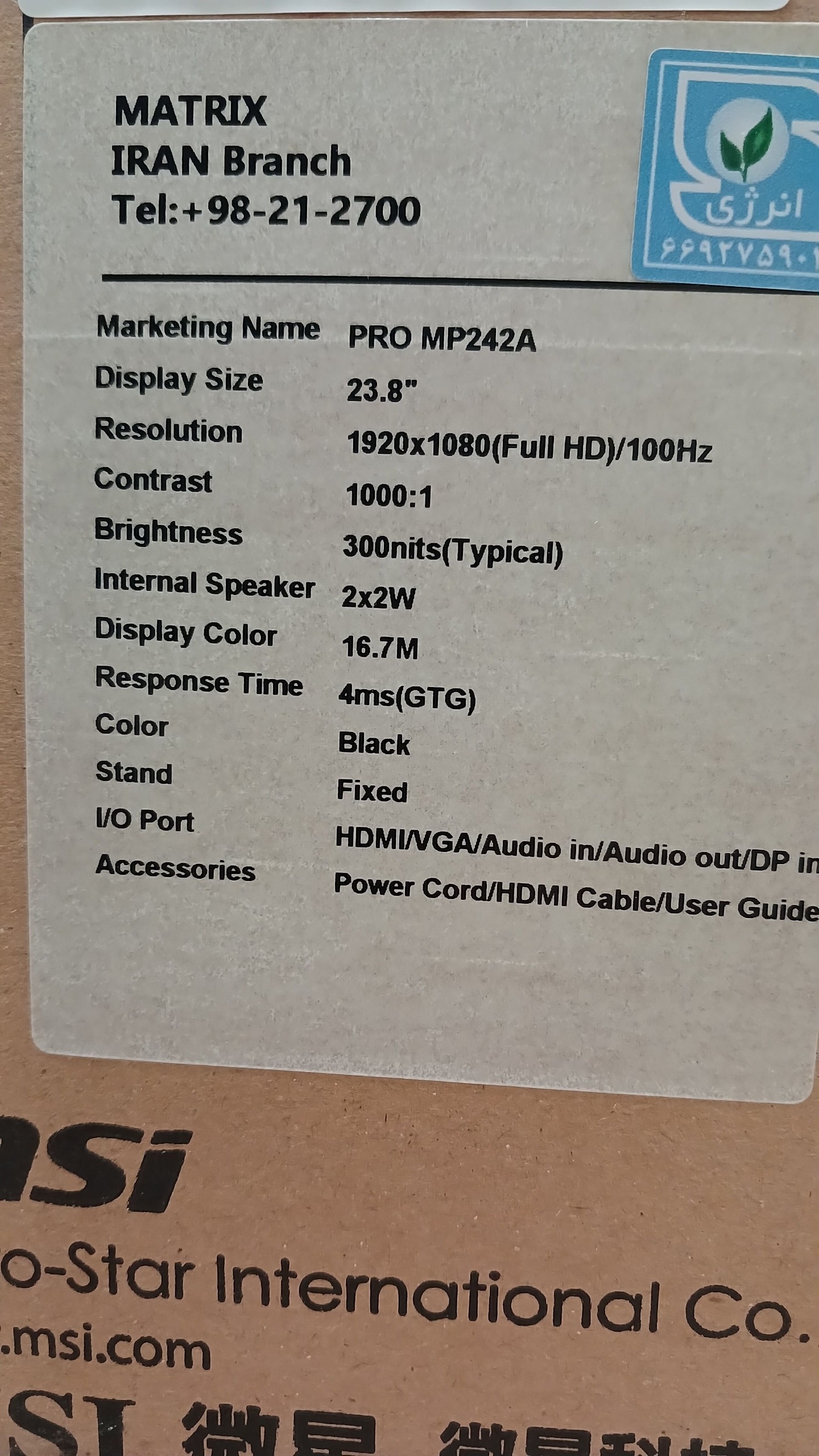 مانیتور ام اس آی 24 اینچ 100 هرتز میده جک 3.5 میلی متری داره بلندگو داره