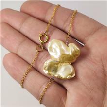 گردنبند استیل طلایی و مروارید باروک پرورشی هند