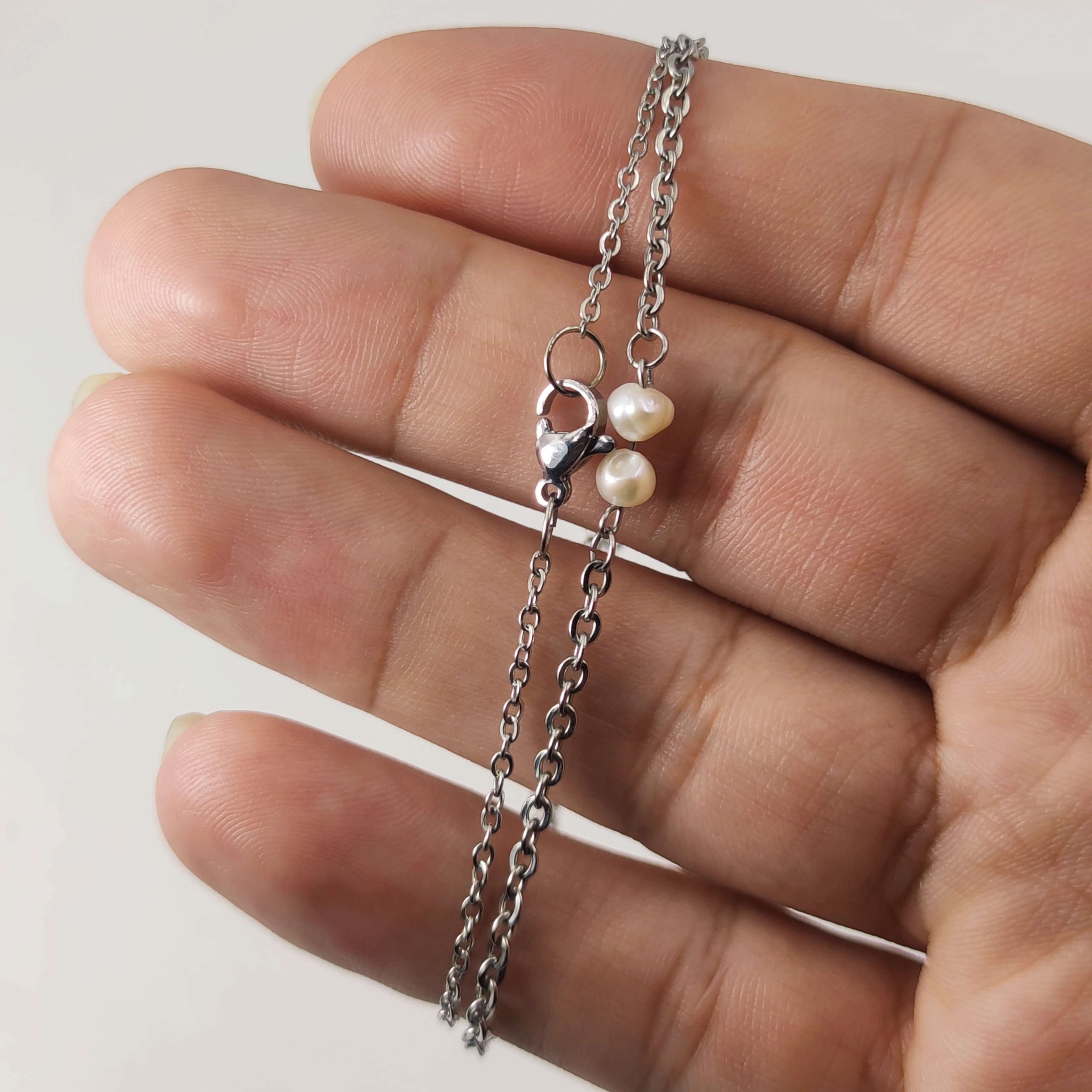 گردنبند استیل مروارید باروک بر اساس کد مورس حرف l