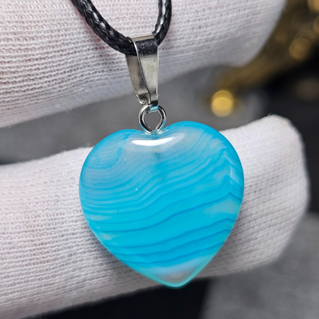 آویز گردنبند سنگ عقیق آبی سلیمانی معدنی کد S3664
