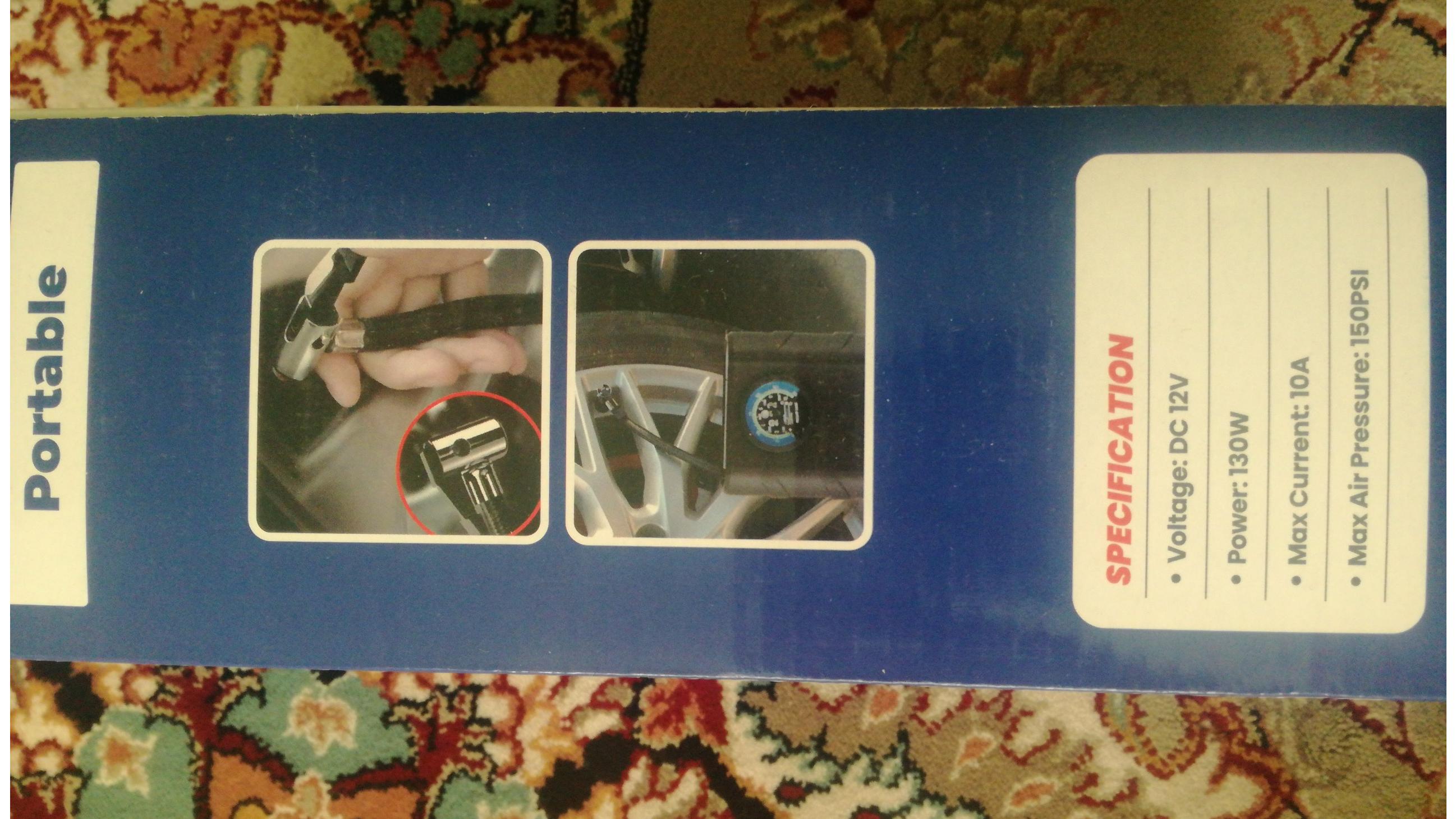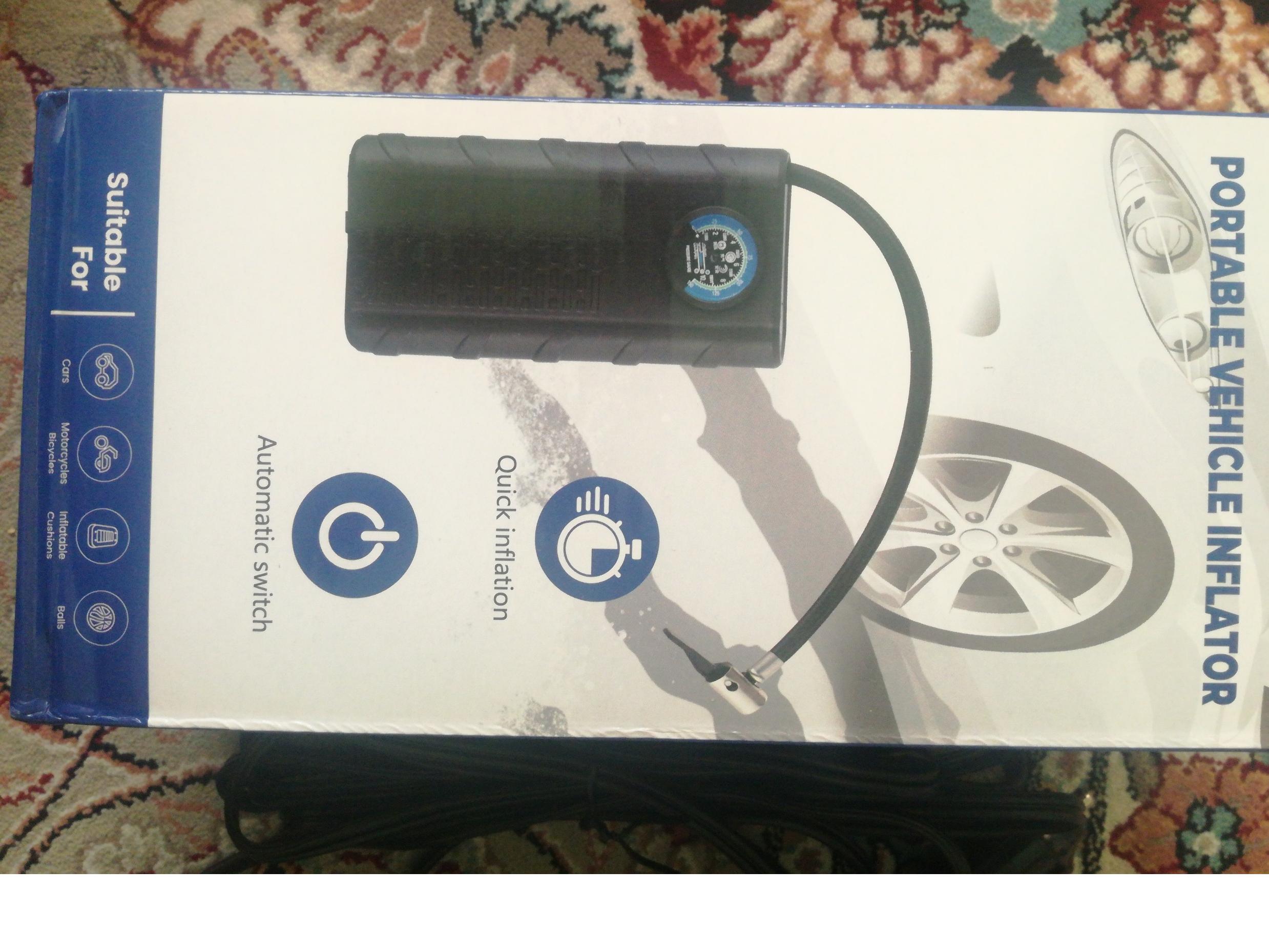 پمپ باد فندکی پورتابل . 12 ولت. 130 وات. 10 آمپر . فشار باد حداکثر تا 150 PSI. مناسب خودروهای سبک و موتور و دوچرخه. مشخصات کامل در عکسها موجود است.
