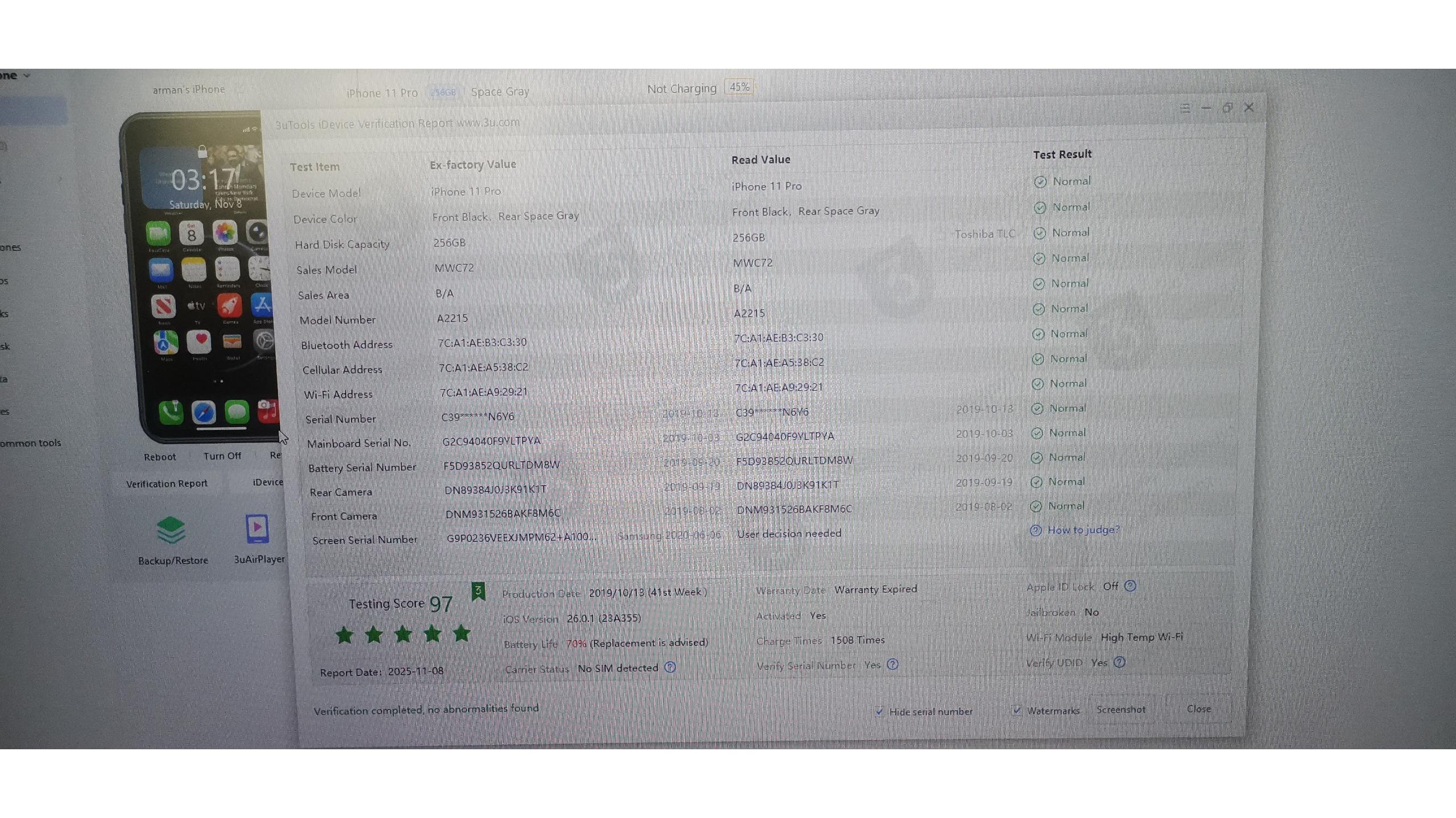 باتریش هم 67 درصد هستش من تعویض نکردم