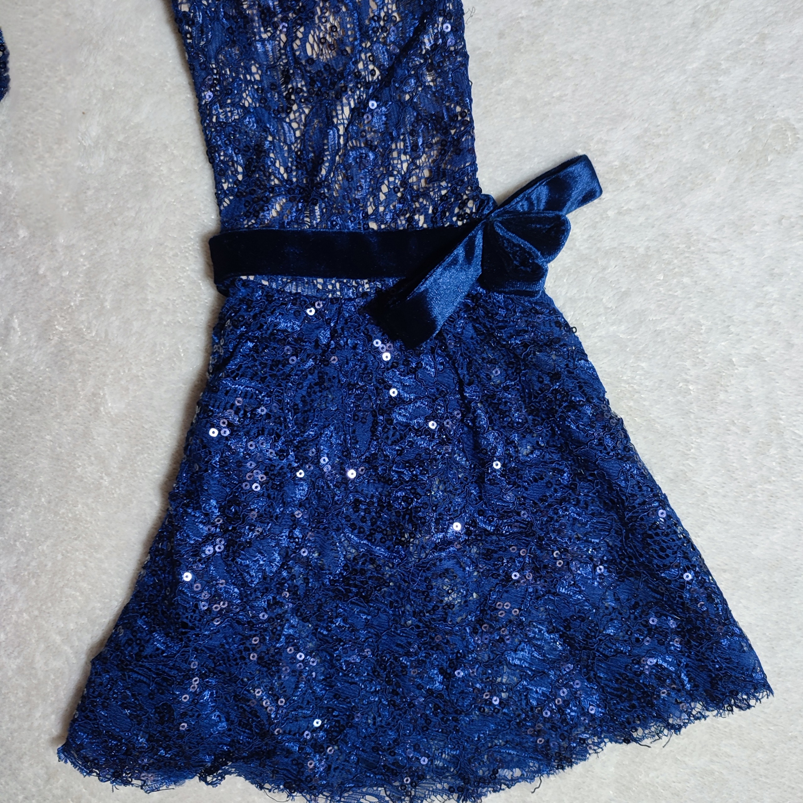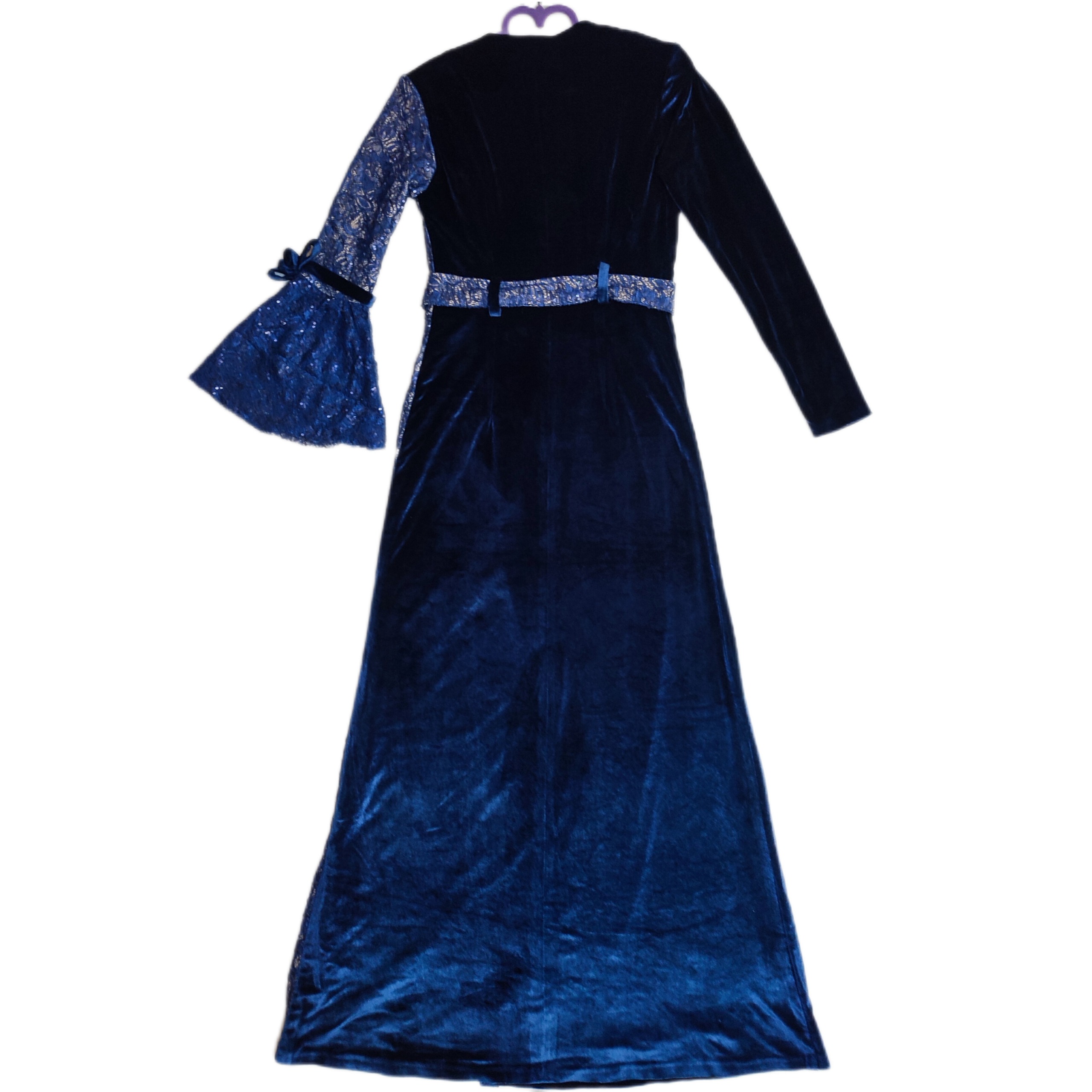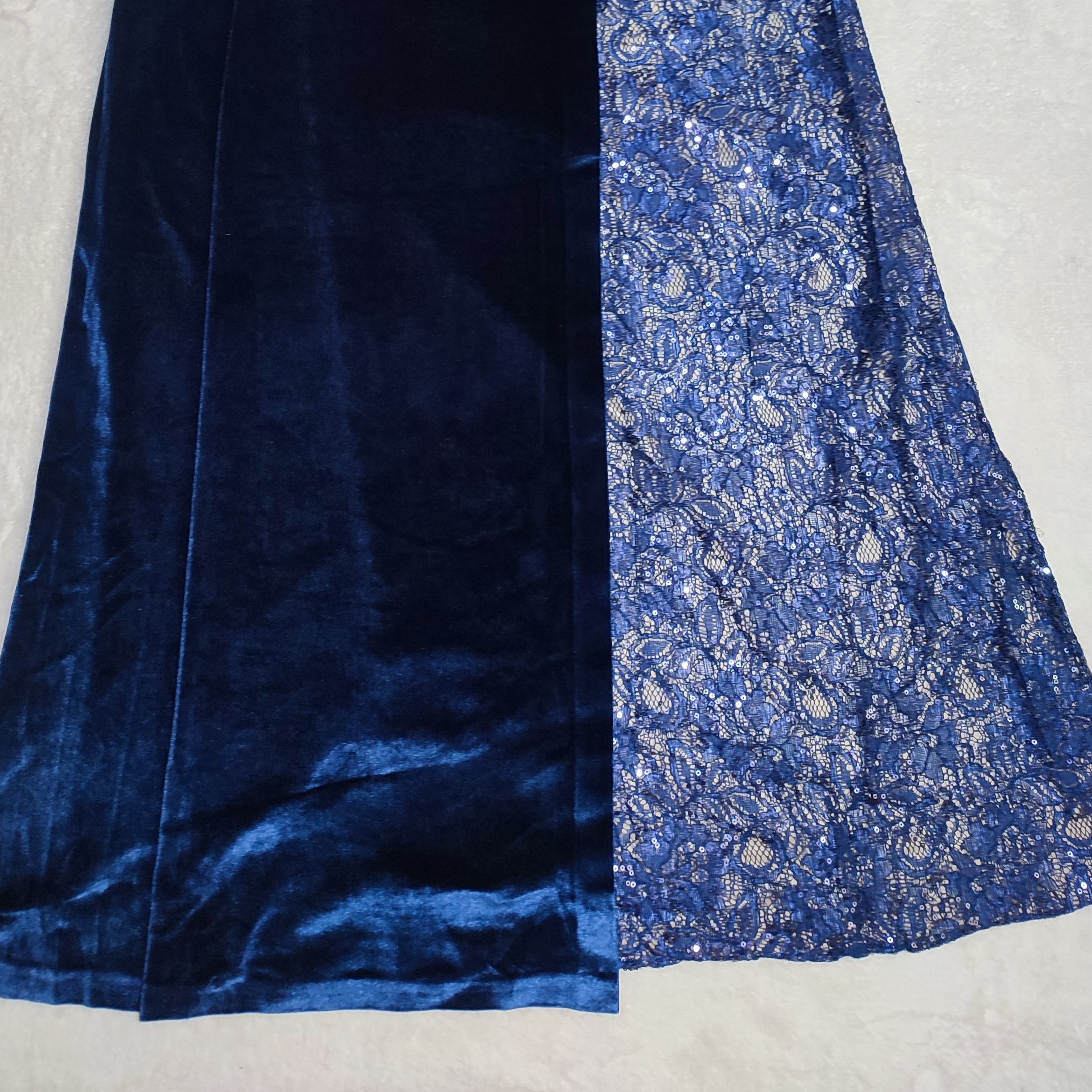 پیراهن مجلسی مخمل و گیپور سورمه ای ماکسی