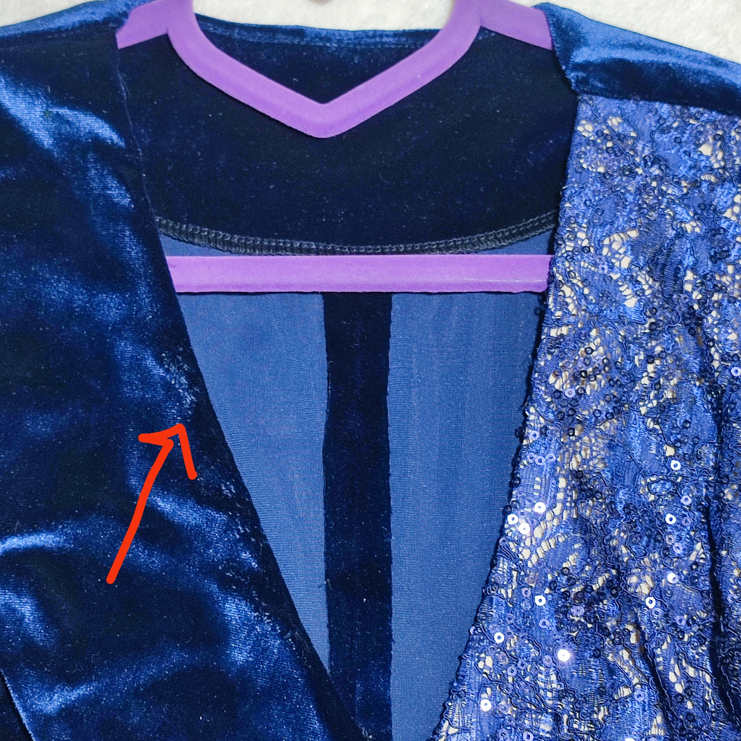 در هنگام اتوی لایه حریر، زدگی بسیار جزیی پیش آمده که اصلا مشخص نیست، با فلش نشان داده شده.