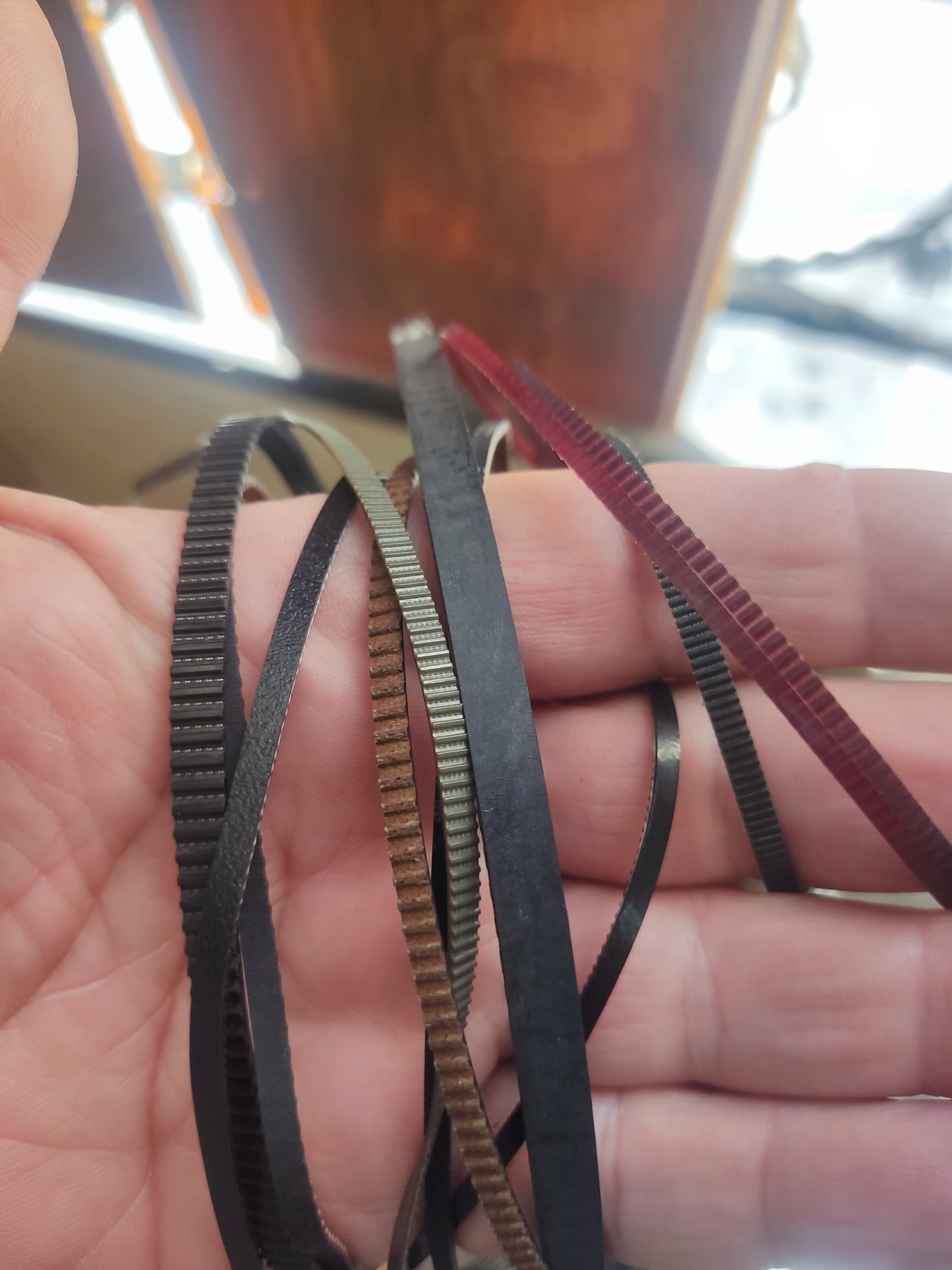 ده عدد تسمه پلاستیکی دندانه دار در سایزهای مختلف تسمه ها دست دوم بعضی نو و همه جنس خوب هستند مناسب برای دستگاههای صوتی و تصویری