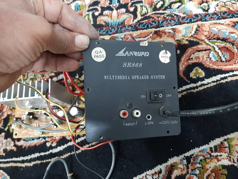 یک خروجی باند روی مدار هست و یکی هم سمت کلید پاور هست که فیش کوچیک میخوره.بقل ورودی AUX