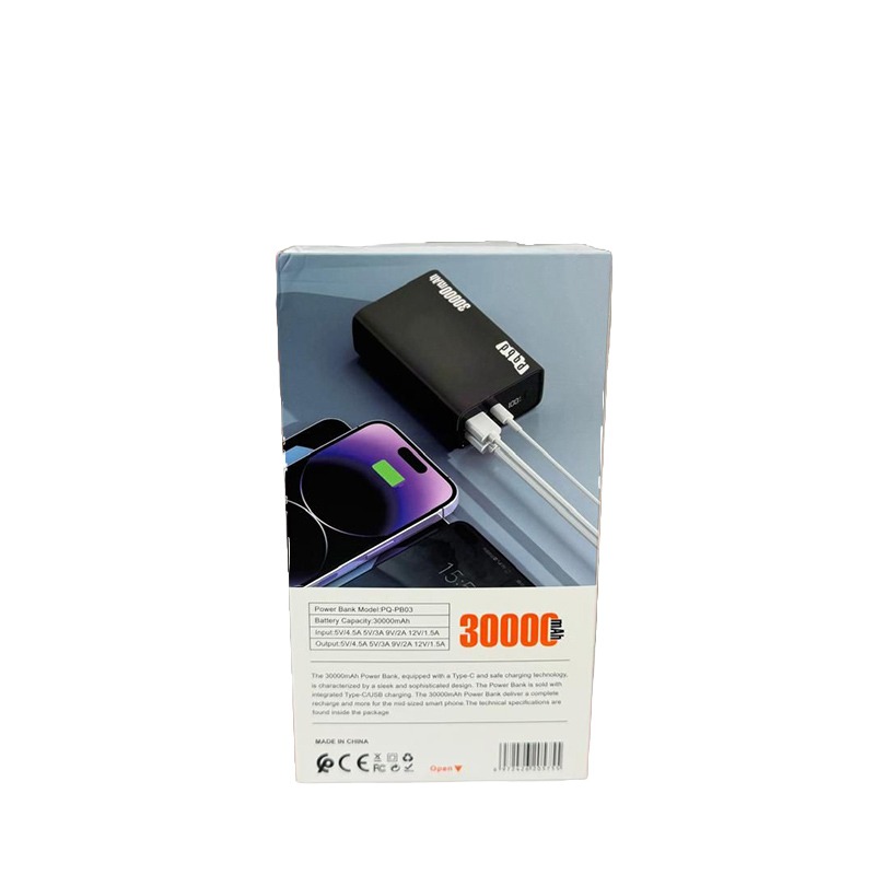 پاوربانک PQBD PB03 ظرفیت قابل توجه 30٬000 میلیآمپر ساعت دارد؛ یعنی میتواند چندین بار یک موبایل یا تبلت را شارژ کند و در سفرها یا روزهای پرمشغله، بسیار کارا باشد. (براساس منابع، این مدل با عنوان Tech-Protect PB03 نیز معرفی شده است.