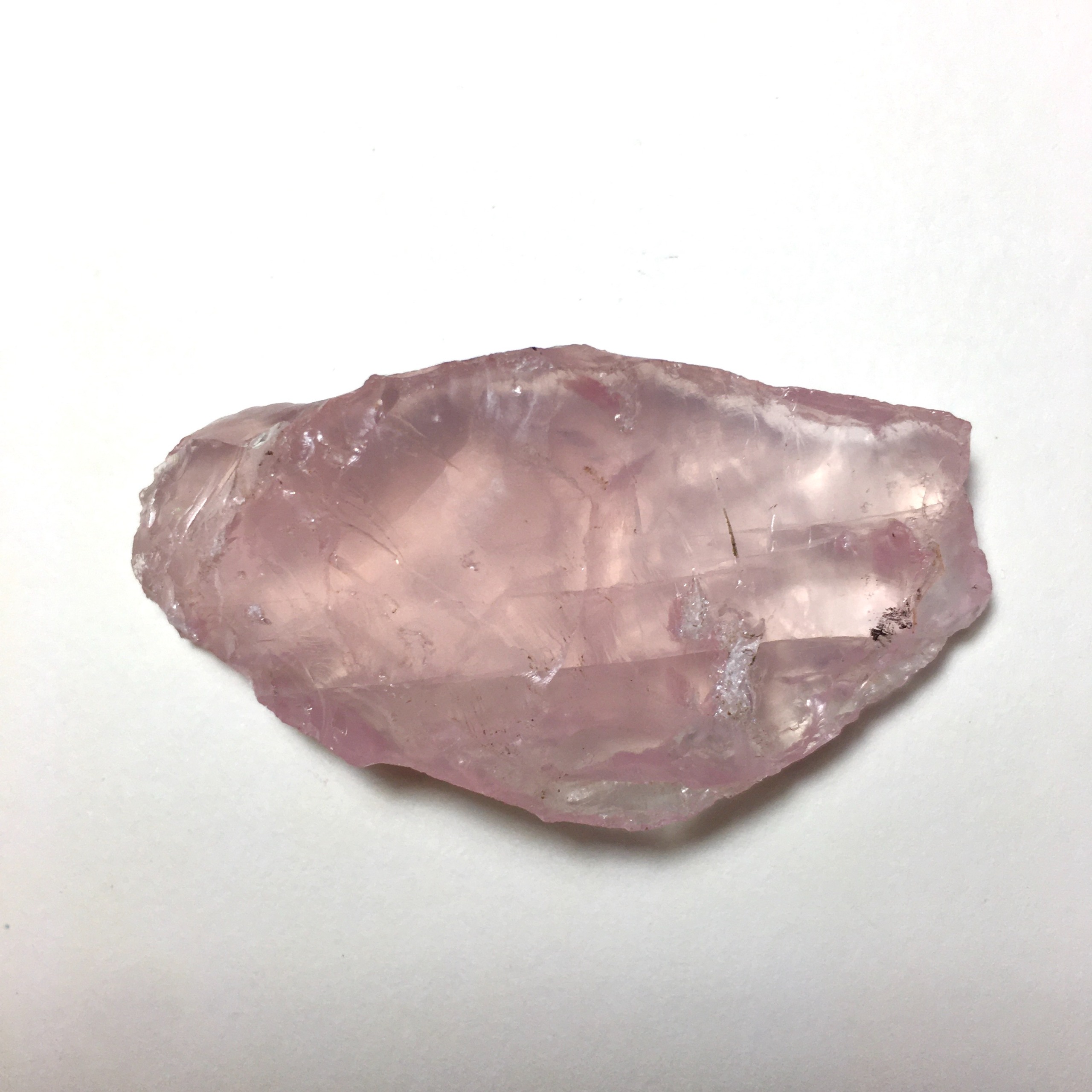 سنگ رز کوارتز طبیعی با رنگ صورتی ملایم و درخشش زیبا، مناسب برای کلکسیون، ساخت گردنبند، انرژی درمانی یا دکور رومیزی.