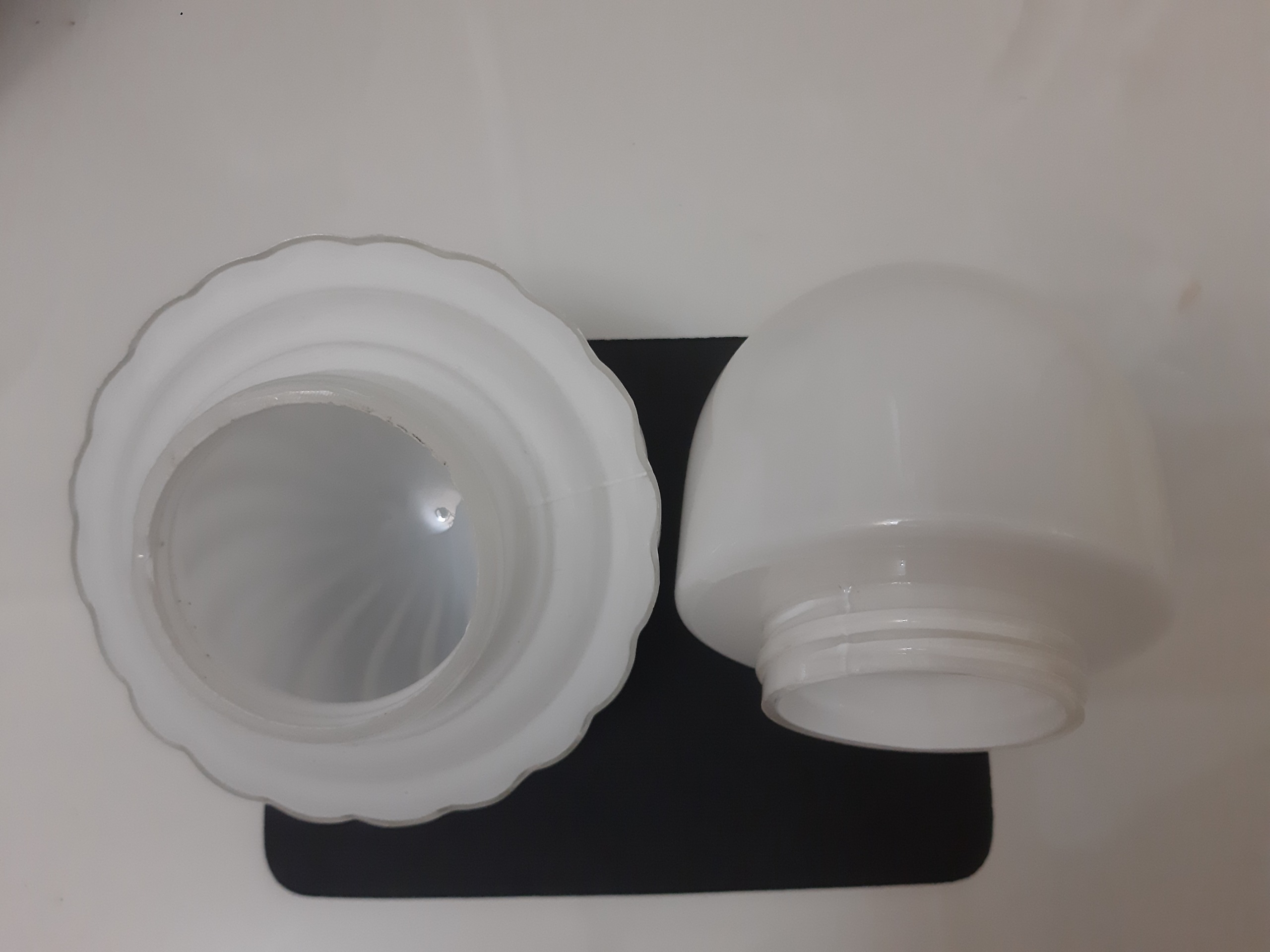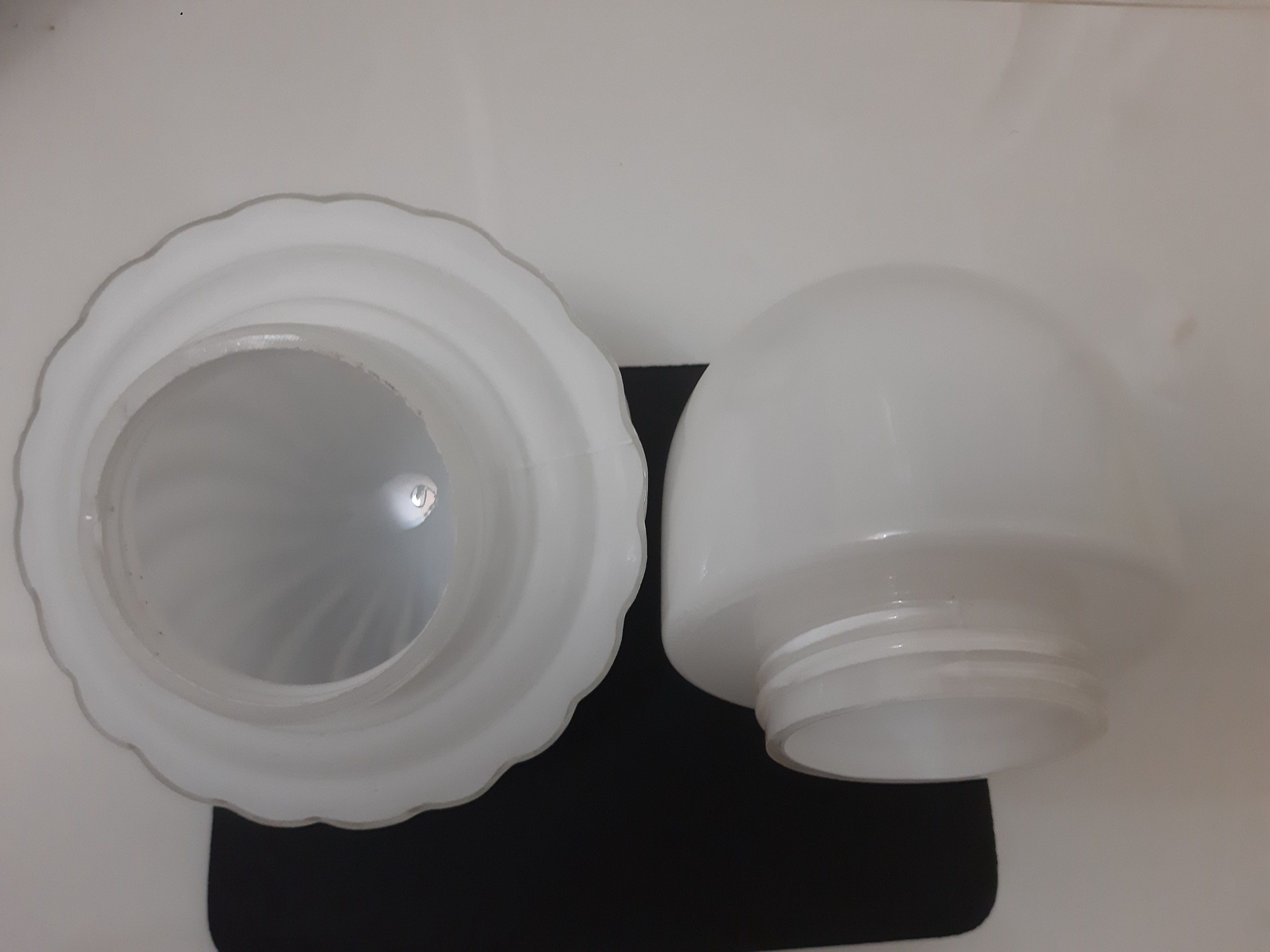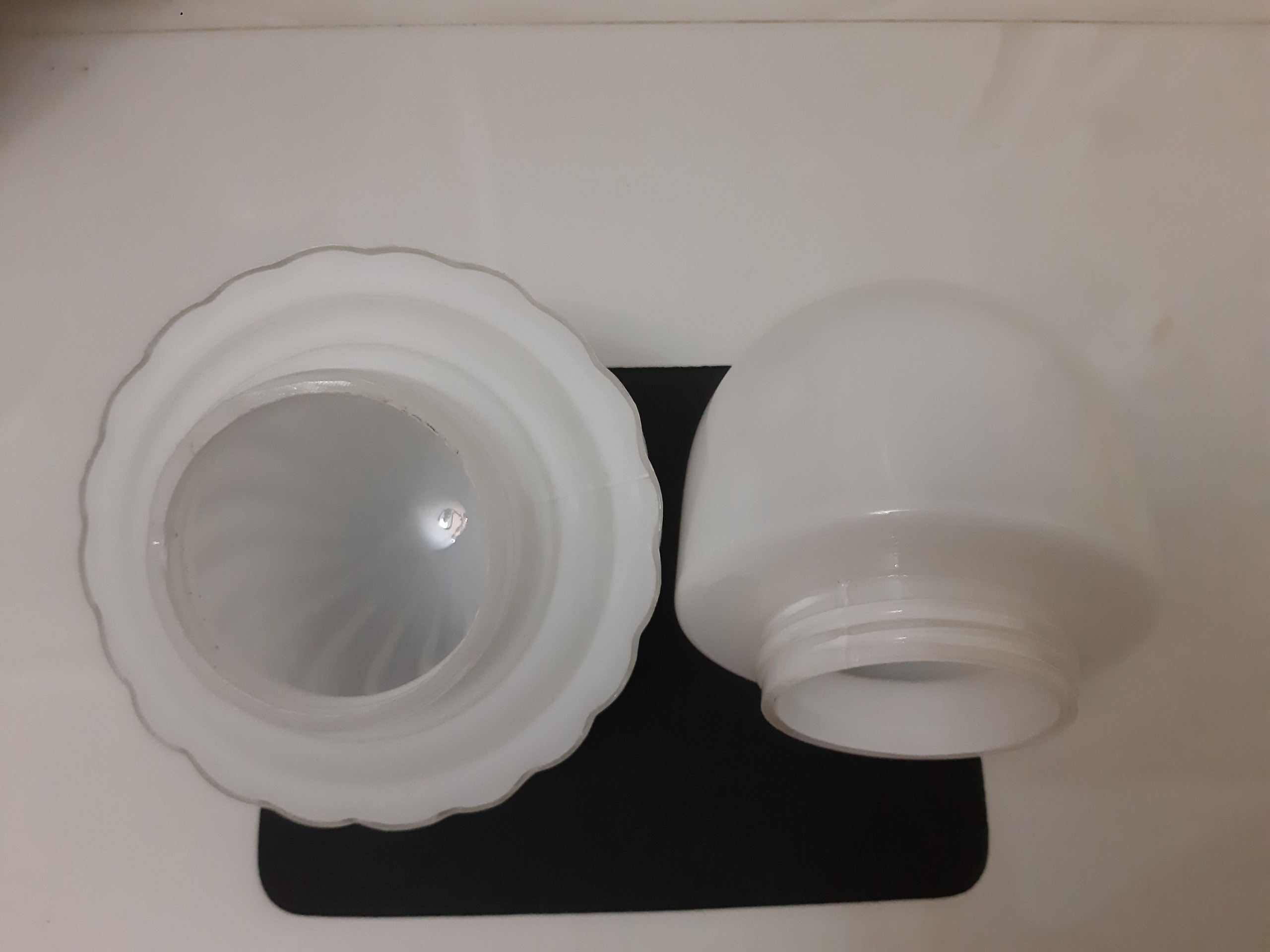 2 عدد حباب شیشه ای لامپ حیاط  و سرویس های بهداشتی  بر خلاف حباب های تو بازار که از جنس پلاستیک هستن جنس این دو حباب شیشه ای هست و برای استفاده با لامپهای رشته ای که گرمای زیادی تولید می کنند مشکلی ندارند