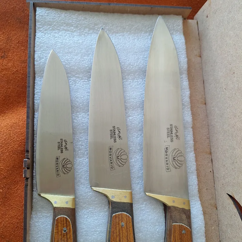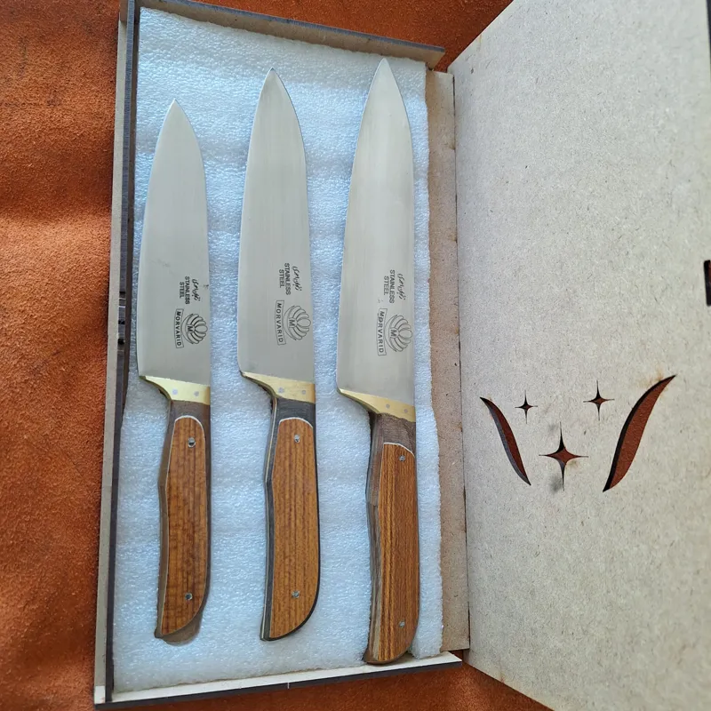چاقو آشپزخانه ضدزنگ ست سه عددی با جعبه