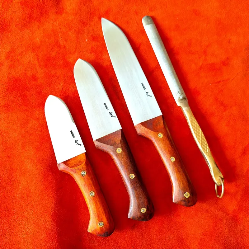 چاقوی سلاخی چاقوی قصابی چاقو پوست کنی استاد مجیدبا مصقل تیزکن4تایی