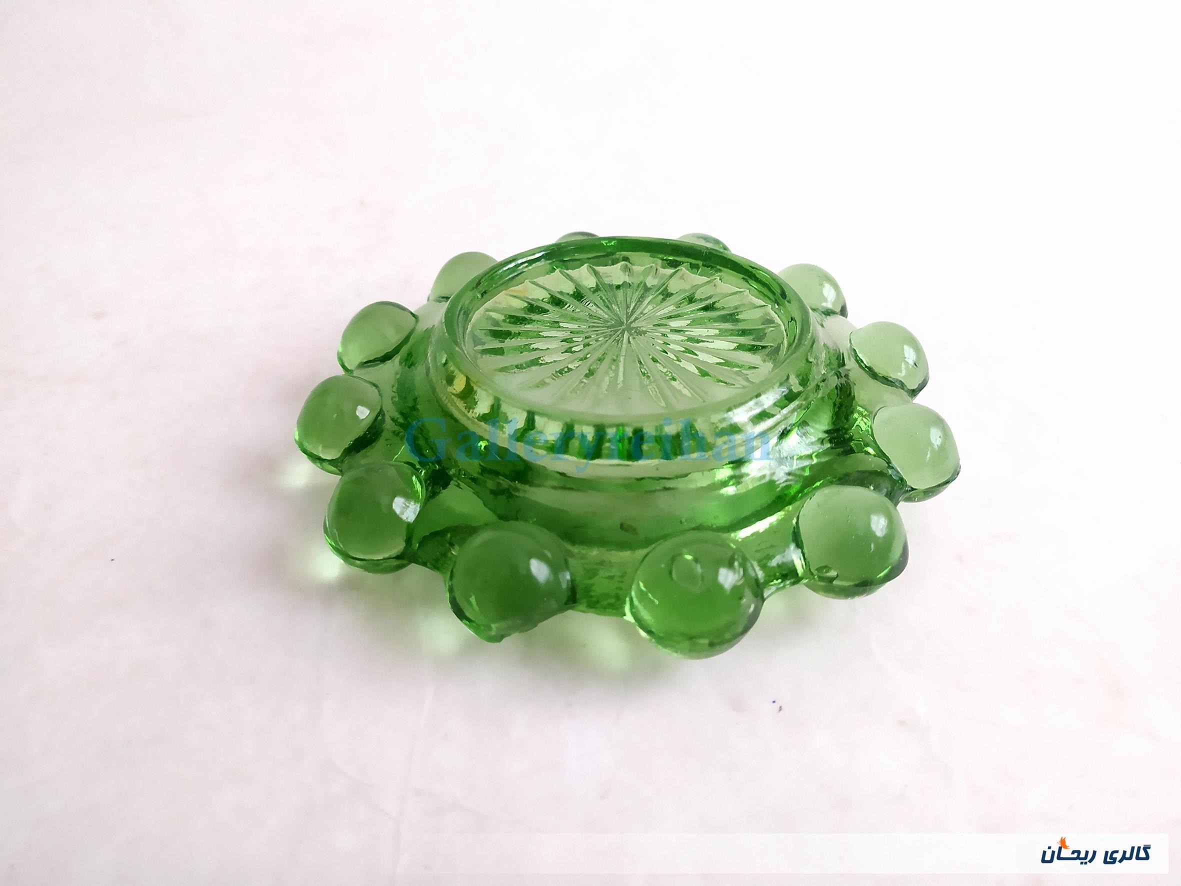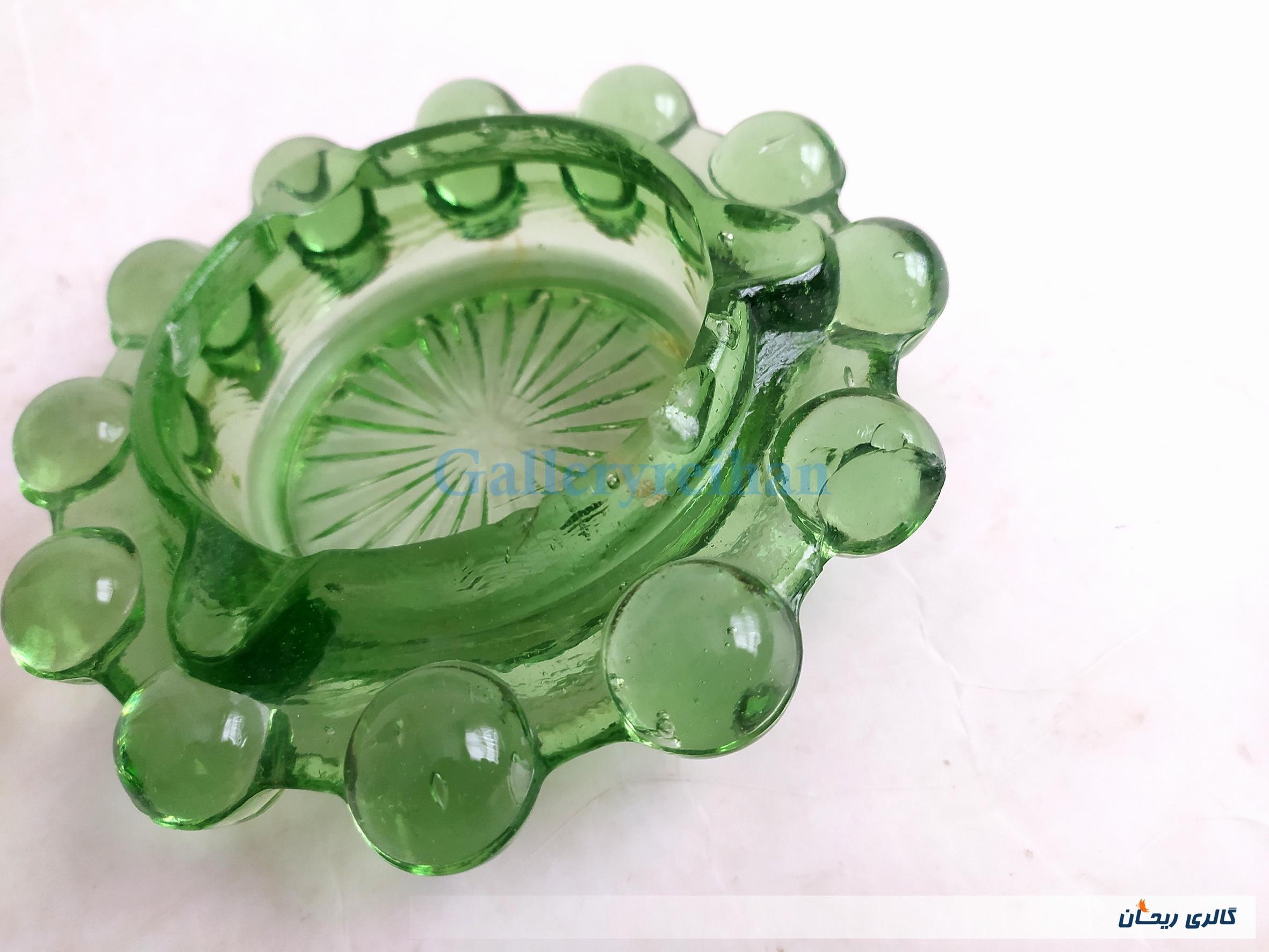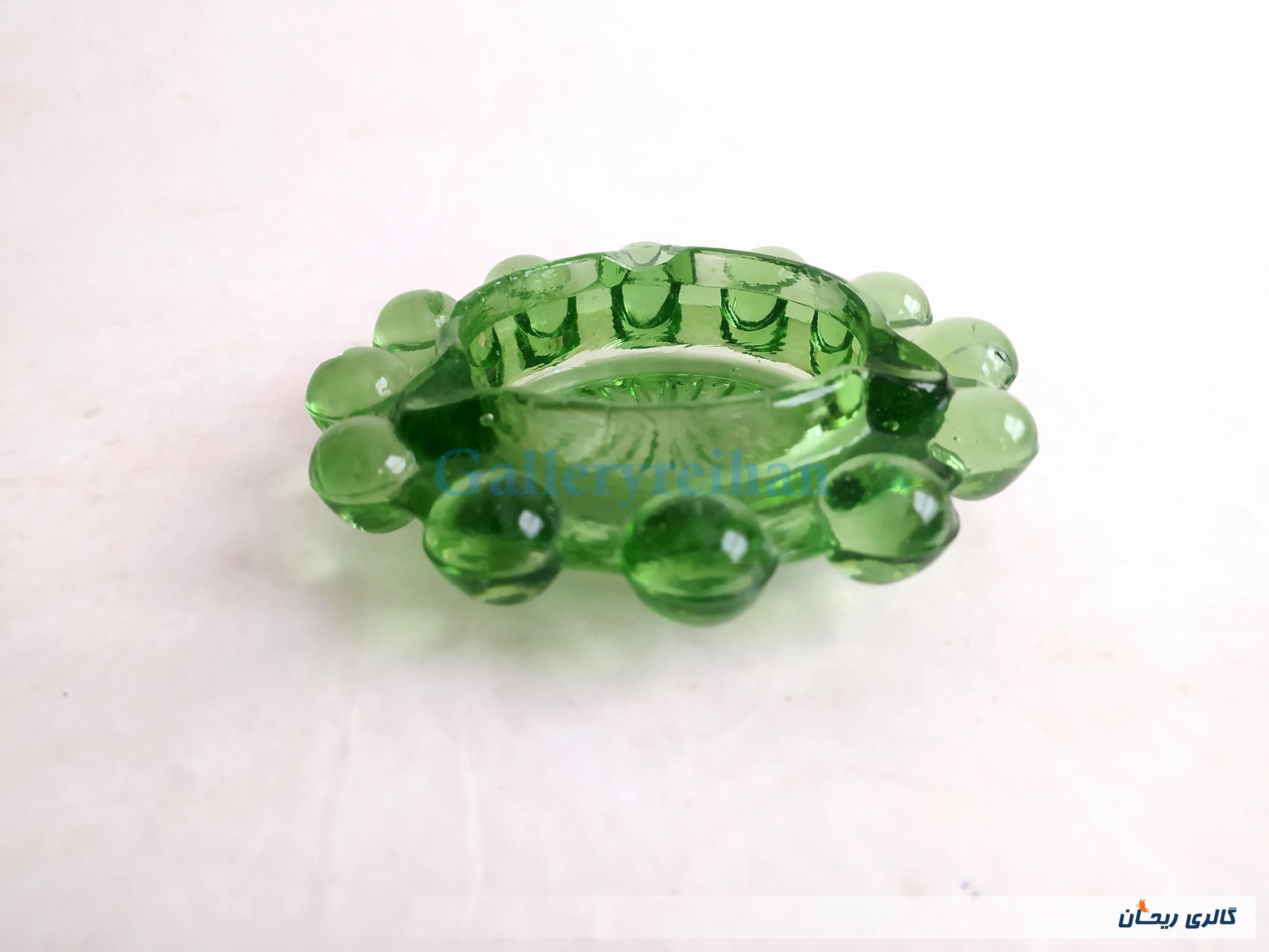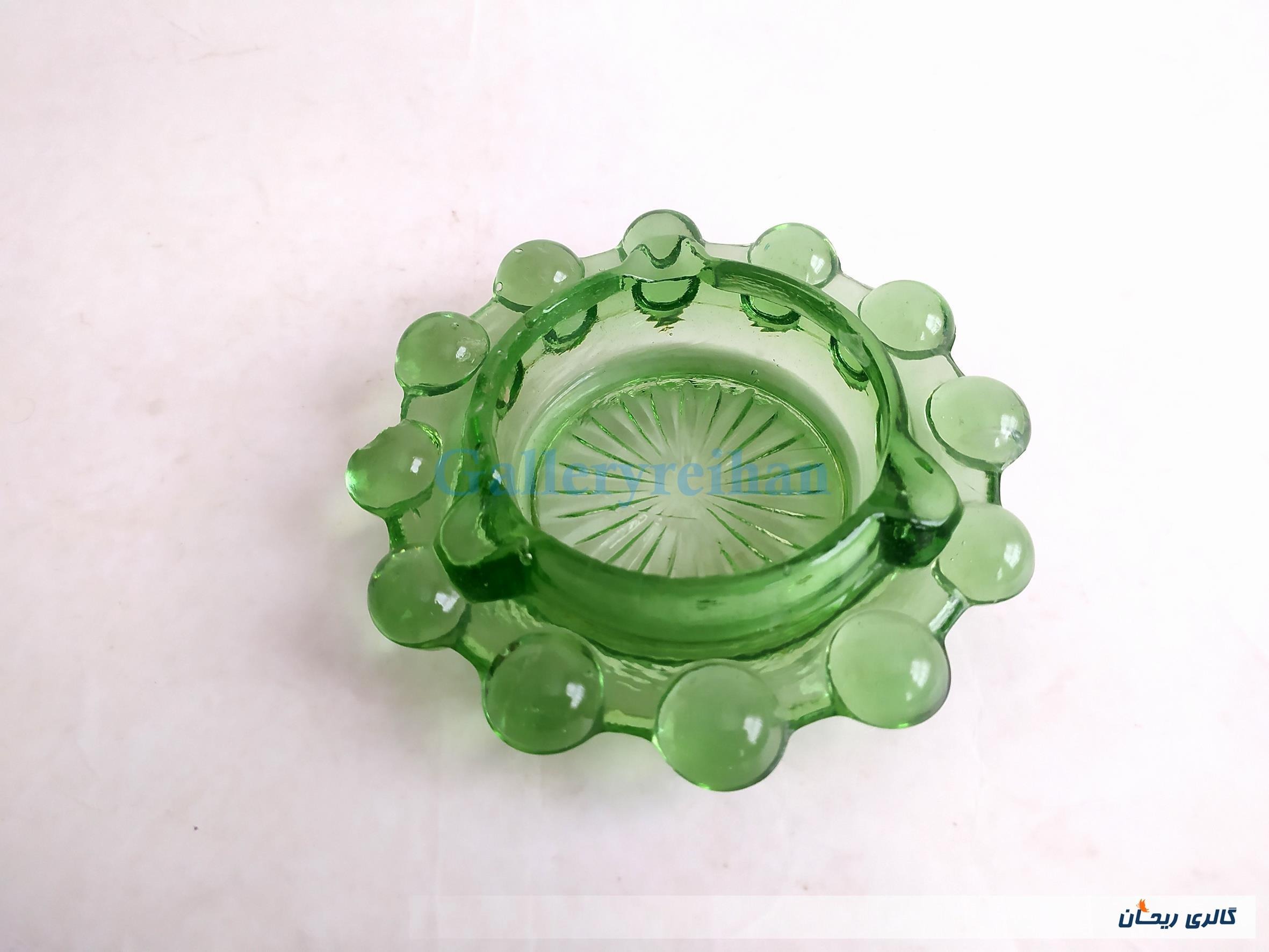 زیر سیگاری شیشه ای سبز تیله ای قدیمی (کد 46768)