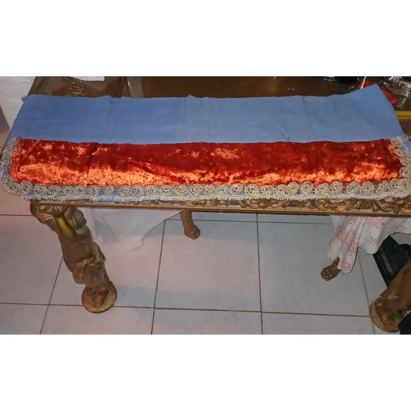 4 عدد لب تاقچه مخمل ترمه کهنه قاجاری تماما سرمه دوزی یا نقره دوزی بسیار زیبا کلکسیونی کمیاب در ابعاد 80 سانت و یکی تقریبا 75 سانت در نزدیک به 30 سانت عرض و یک ترمه مخمل گرد جا نی قلیون بسیار زیبا کلا 5 عدد تقدیم به شما بزرگواران میشود.دوستان اینا همه قاجار هستند و به شرط سلامت تقدیم میکنم.بیایین بخرید.عکس بیشتر خواستید در خدمتم.دونه ای یک میلیون و هشتصد