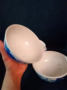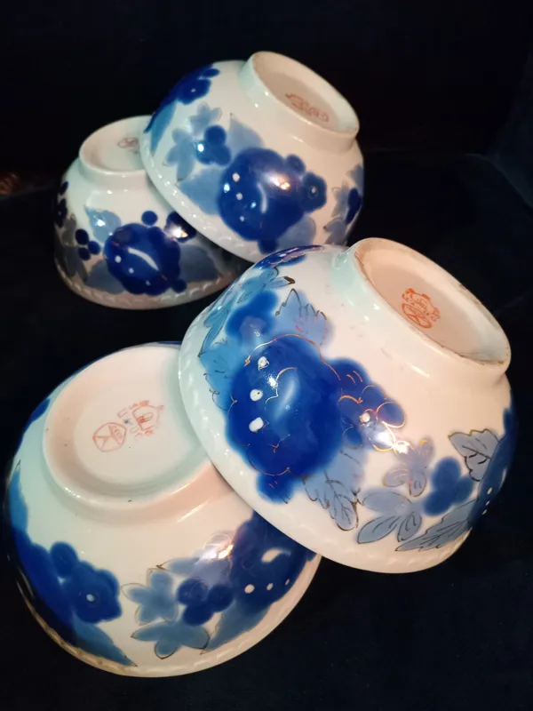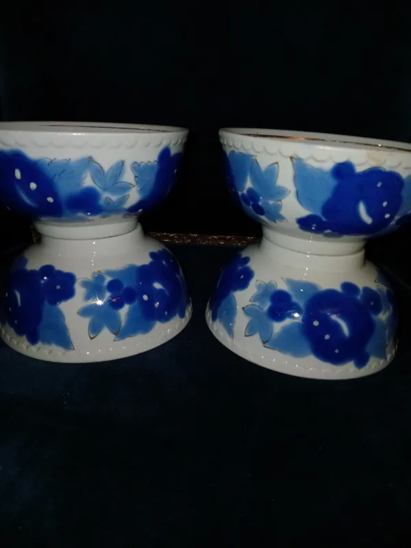 4 عدد کاسه قلم آبی روسی کهنه 70 هشتاد ساله دست ساز نقاشی دونه نشون و آبطلاکاری بسیار زیبا بدونه کوچکترین لب پری با ترکه مویی.رنگ و لعاب را ببینید آخه.قیمت برای هر 4 عدد.بیایین بخرید