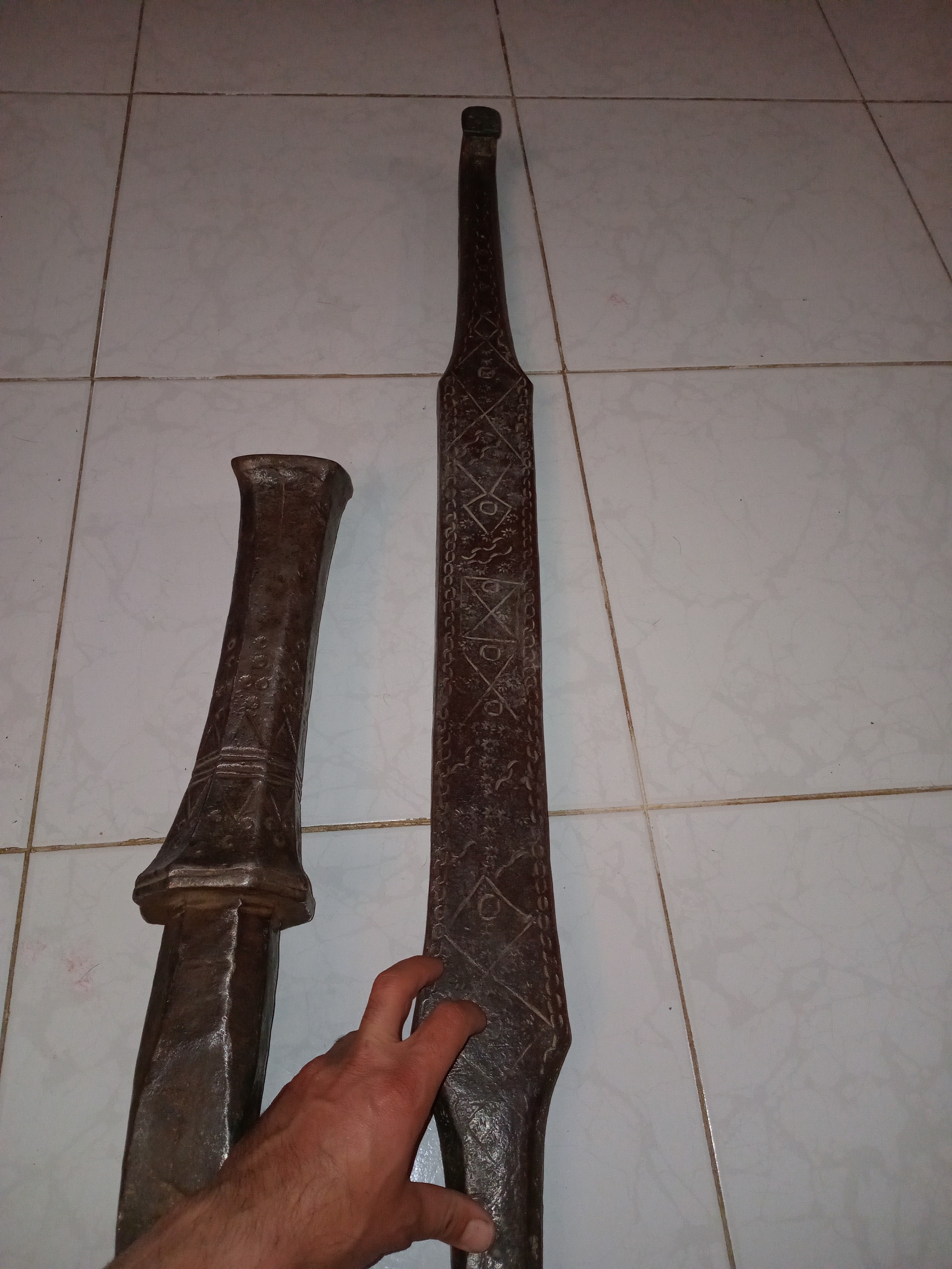 ابعاد سندان بزرگ 130 سانت به وزن حدودا 30کیلو و ضخامت 3 سانت فولاد کهنه چکشی و سندان کوچک 60 سانت به وزن حدودا 16 کیلو.شما قلم کهر را ملاحظه بفرمایید که چیکار کرده.جهت استعلام قدمت پیام در خدمتم.قیمت برای هردو.هیچ کجای ایران تاشو نمیبینید بشرط