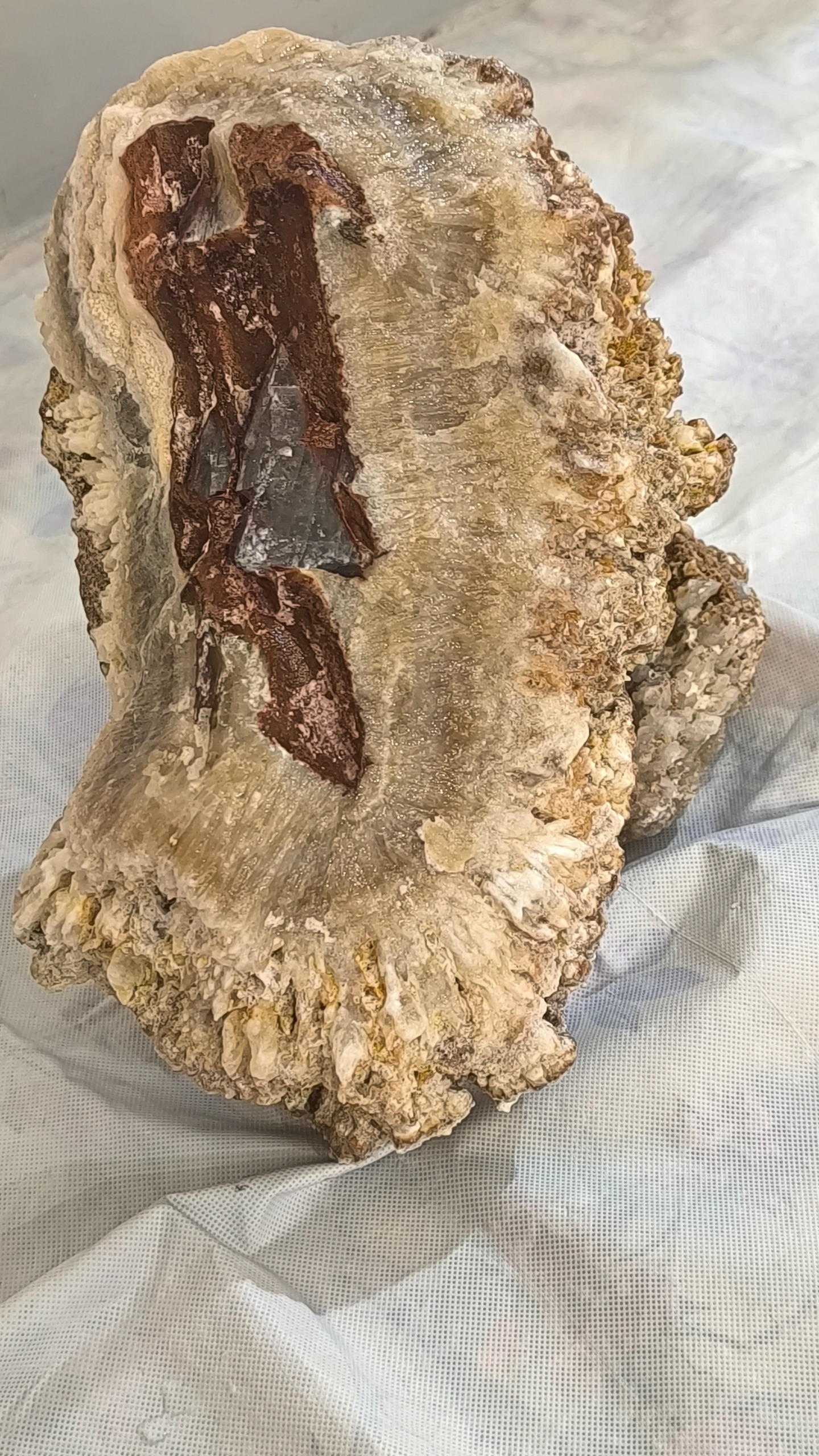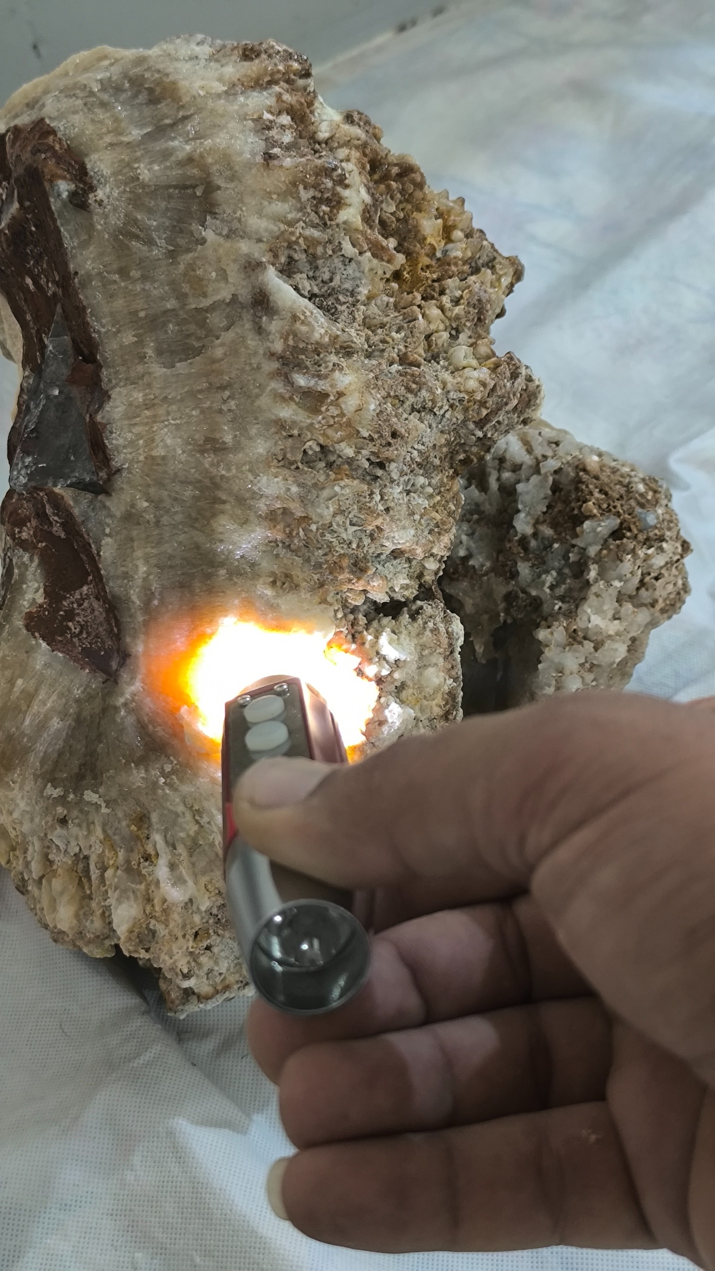 سنگ راف ارگونیت قول آسا وزن دقیقش 4950 گرم یه کار که هم از لحاظ اندازه به درد خیلی از کارها میخوره حتی شما به خاطر جنس ارگونیت بهتر و راحت تر تراش میخوره میتونید مجسمه هم بسازید هم میتونید همین جوری ازش به عنوان دکوری استفاده کنید عبور نور خوبی داره قیمتش هم واقعاً مناسبه برای همچین سنگی
