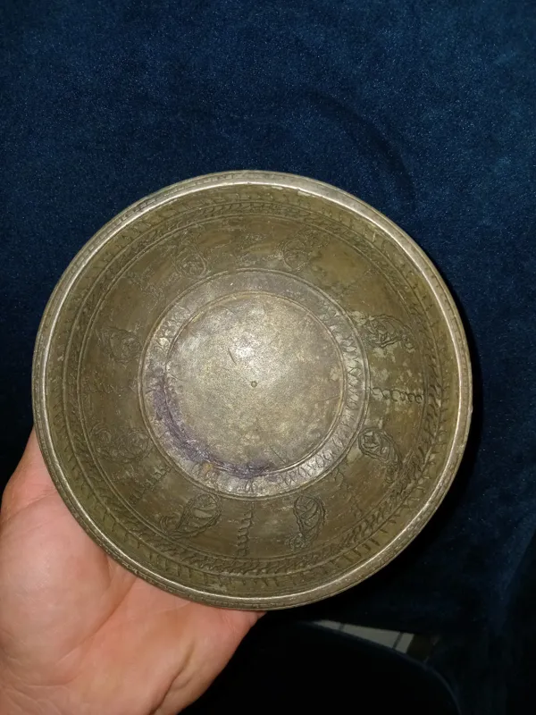 کاسه مسی چونه ای کهنه قلم کهنه بسیار سنگین و جوندار کلکسیونی کمیاب.اندازه چند سانت کفه کاسه ترمیم کهنه داره.جهت استعلام قدمت پیام در خدمتم.این کاسهاگر که این ترمیم را نداشت 25 تومن ارزشش بود.