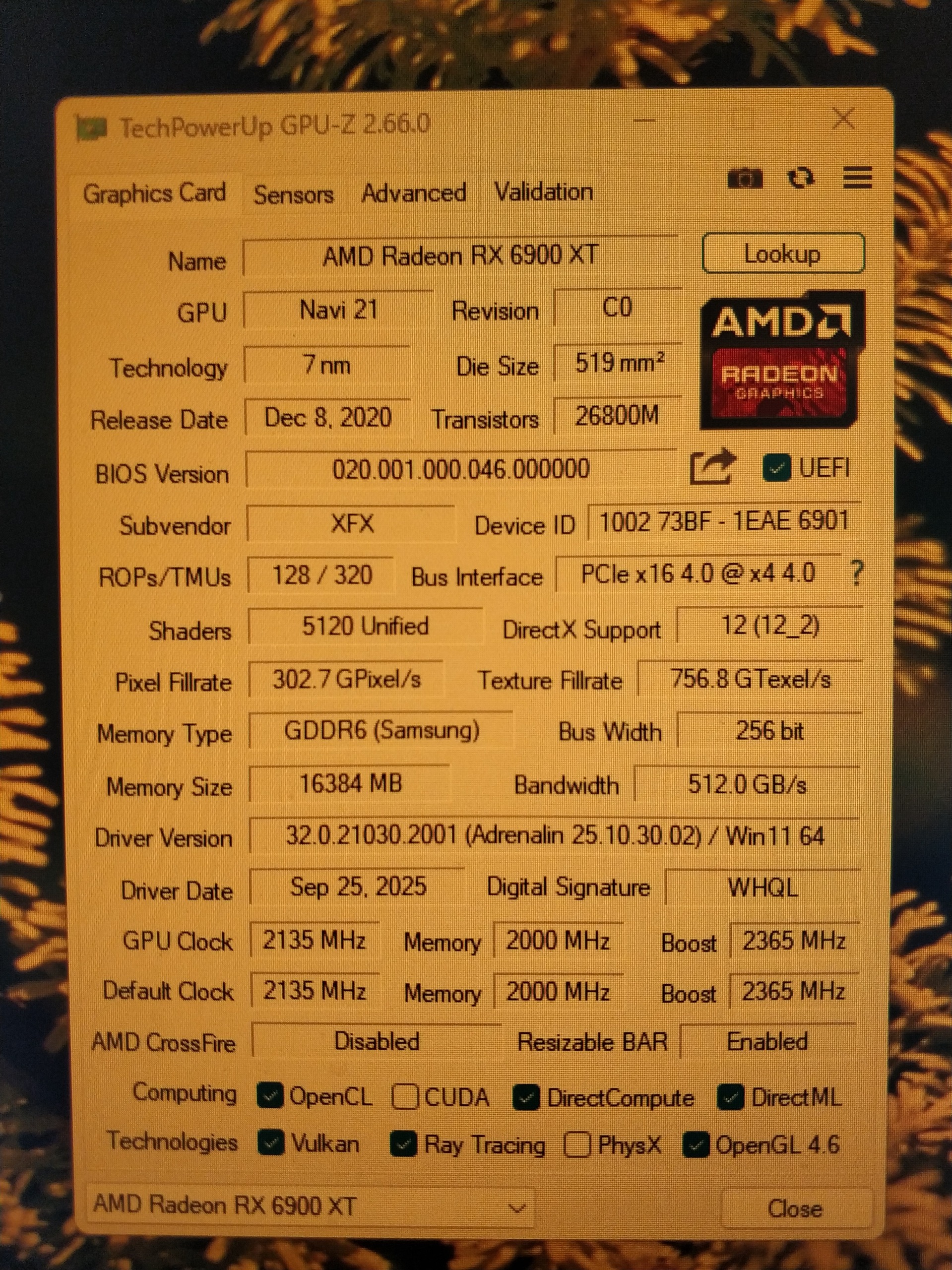 نام پردازنده گرافیکی:RX 6900 XT