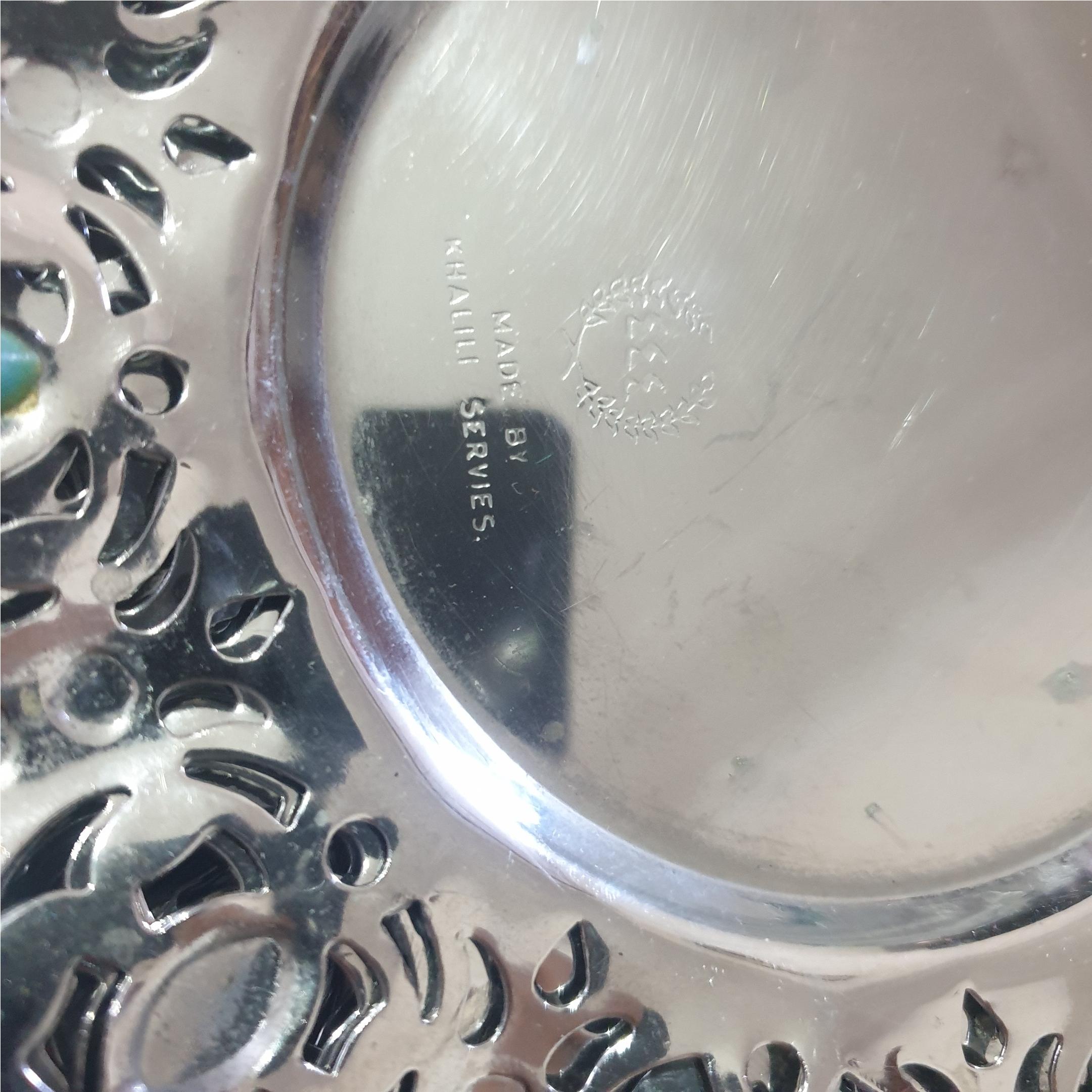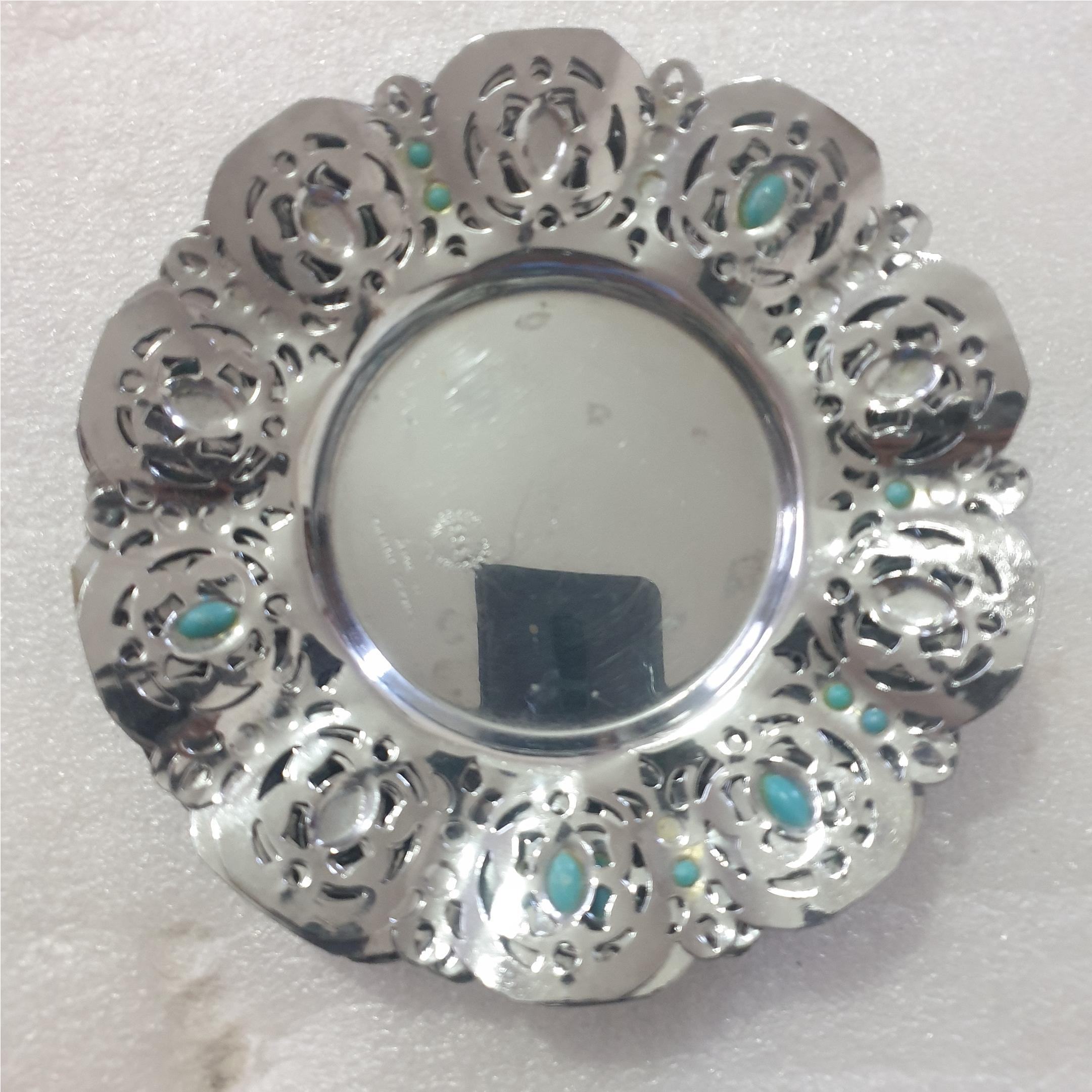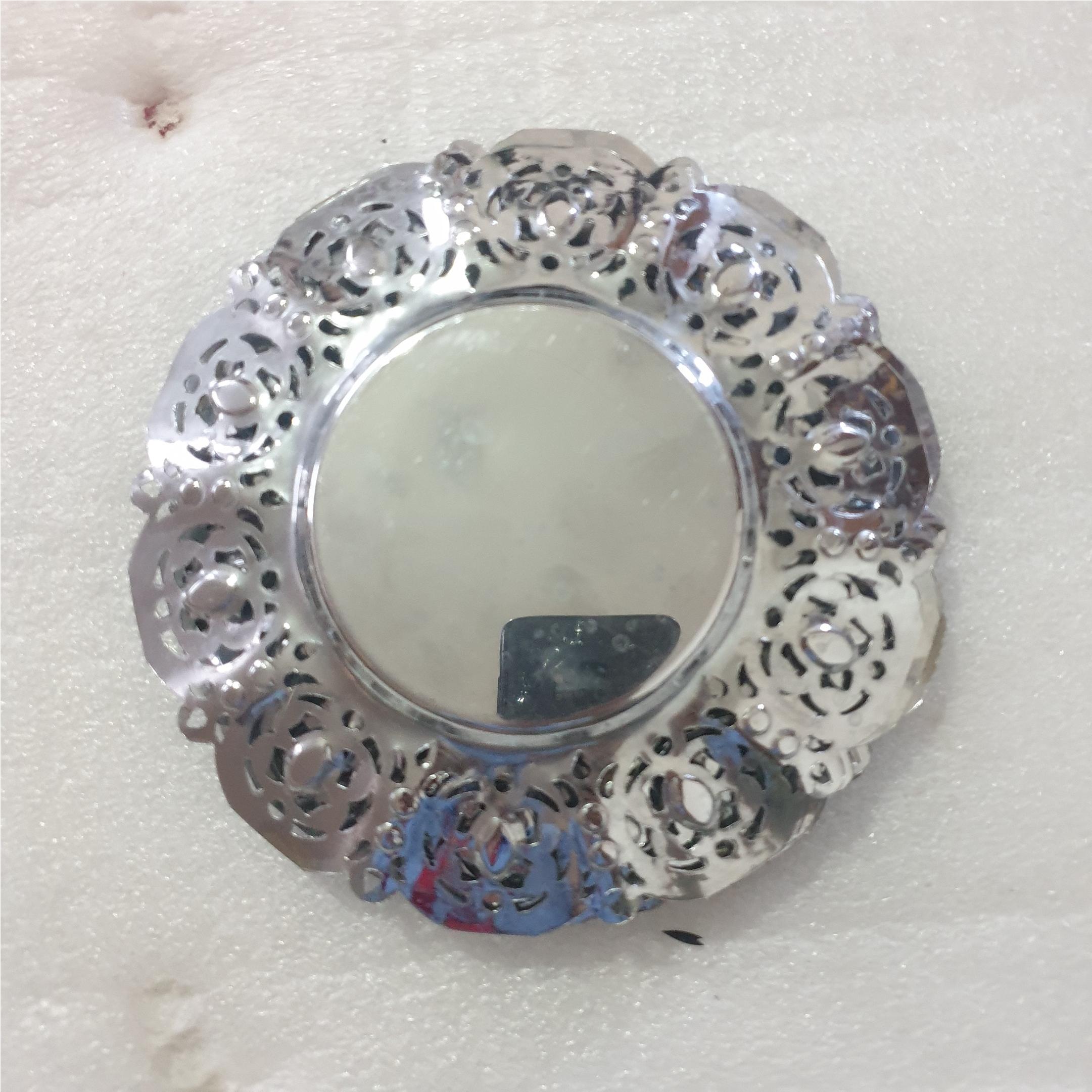 6 پیش دستی یا زیر استکان به قطر 18 سانت برنزی روکش کروم که جذب آهن ربا نمیشه قدیمی هستن نگین دارن
