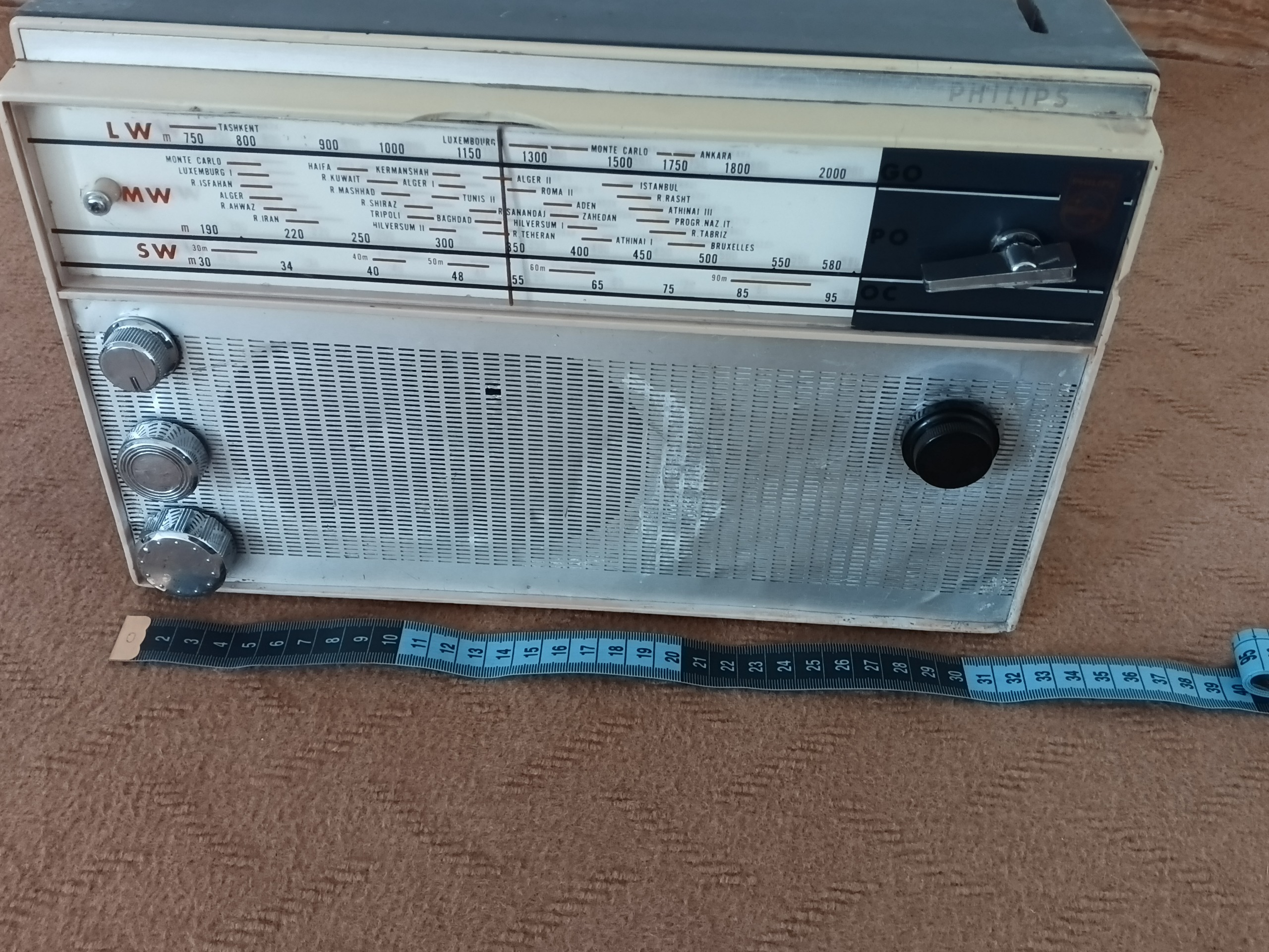 رادیو فیلیپس سه موج بسیار قدیمی و کلکسیونی و خیلی خاص با صدای بسیار با کیفیت و مخملی ، موج LW کلا در ایران کارایی ندارد ، اما موج متوسط گیرندگی عالی دارد و موج کوتاه SW هم گیرندگی دارد اما برای گیرندگی عالی مثل رادیو لامپی نیاز به آنتن هوایی دارد جای آنتن هوایی سیم زده ام ، یک آنتن داخلی هم داخل رادیو هست که در عکس مشخصه ، در واقع میشه از دو نوع آنتن استفاده کرد