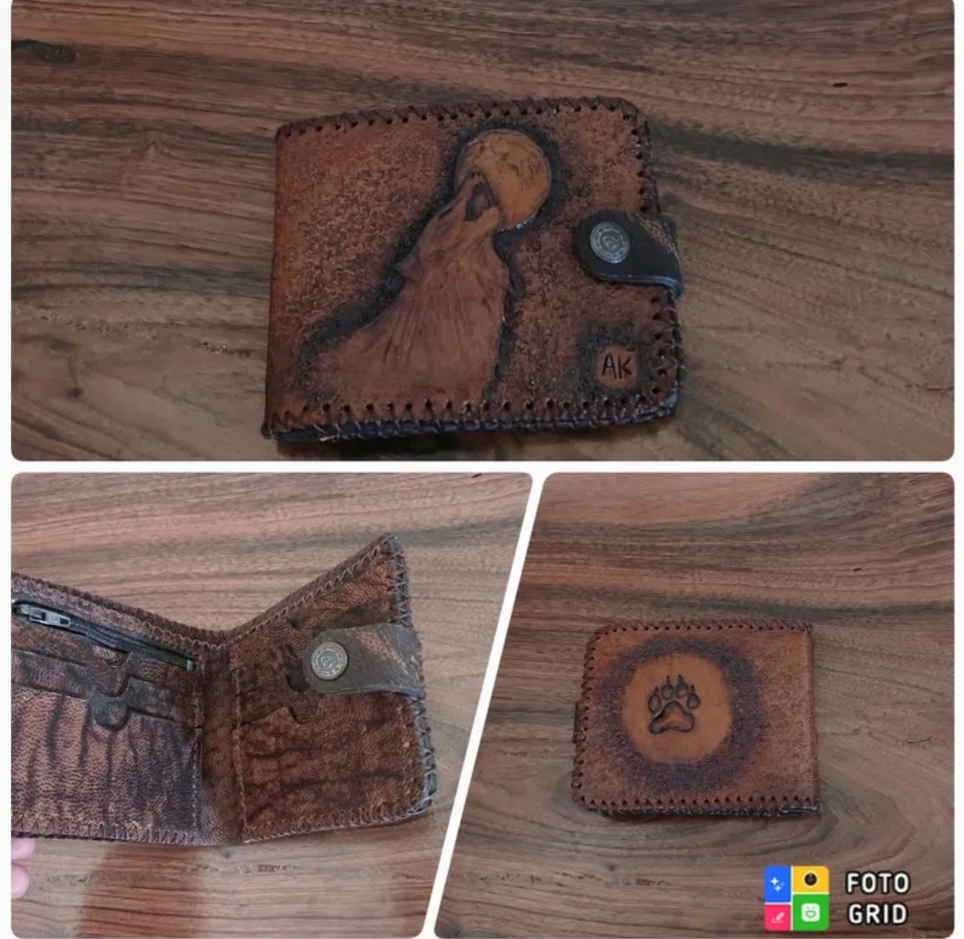 کیف جیبی قلمزنی شده بر روی چرم طبیعی و باکیفیت و کاملا دست دوز، در ساخت این کیف از نخ ضخیم موم زده مخصوص دوخت استفاده شده است، دارای هفت جیب جای کارت ویک جیب زیپ دار و یک جیب جای اسکناس، یک صنایع دستی ماندگار و متفاوت